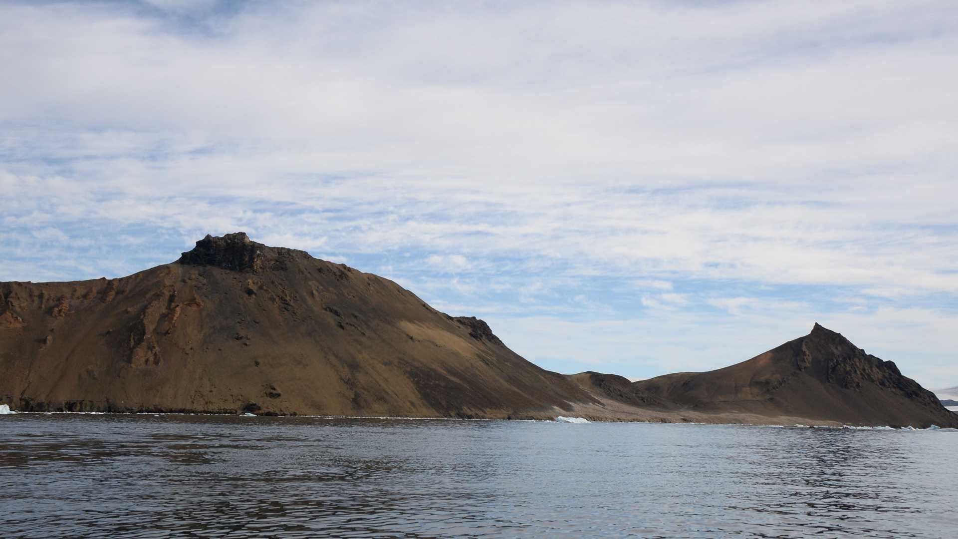 After lunch, we entered the Weddell Sea. The sea is named after Scottish sailor James Weddell, who entered the sea in 1823 after mistaking some large tabular icebergs for land. Our ship’s officers expertly guided the vessel through the icebergs, and we made good progress toward our afternoon destination, Devil Island. The island is named for its two horn-shaped peaks, which resemble the horns of a lurking devil. This made many of us wonder, “Why are so many volcanic features worldwide named after the devil?”