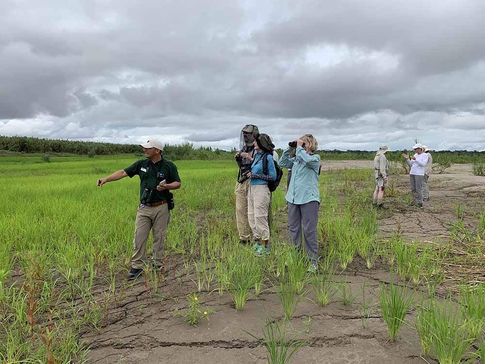 In the afternoon we explored another place, following the course of the Ucayali River on our way to the mighty Amazon River. The site we visited was Belluda Creek, with a vast forest on each side, home to many songbirds, such as tanagers. The highlight here are the black-hooded crimson tanagers that come very close to the ground to forage on wild figs. There are also egrets that come here for fish, as Belluda is also a popular place for fishermen and all the fish-eating birds, including the black-collared hawk.