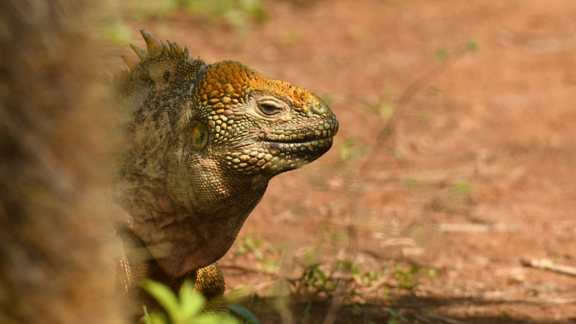 Northwest of Santa Cruz is a place known as Dragon Hill, home to a special animal that we hoped to find today–the yellow land iguana. Our adventurous guests joined us for an early exploration. We crossed lava rocks, beaches, ponds, and muddy trails. We were surrounded by the greens and reds of the plants, which paint the island with an outstanding mosaic of color. On our hike, we encountered the yellow land iguana. We also observed seabirds, marine iguanas, lava lizards, and fish in the tide pools.