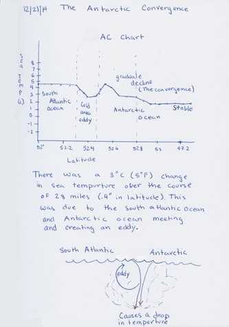 Throughout the day, naturalists Joe Holliday and Gabriela Roldan met with the Young Explorers, guests under 18. They had a ship tour and started daily journals. There was also a special session on oceanography, where our young guests learned about ocean currents and waves. They graphed the amazing Antarctic Convergence, which marked the beginning of the cold Antarctic waters.
