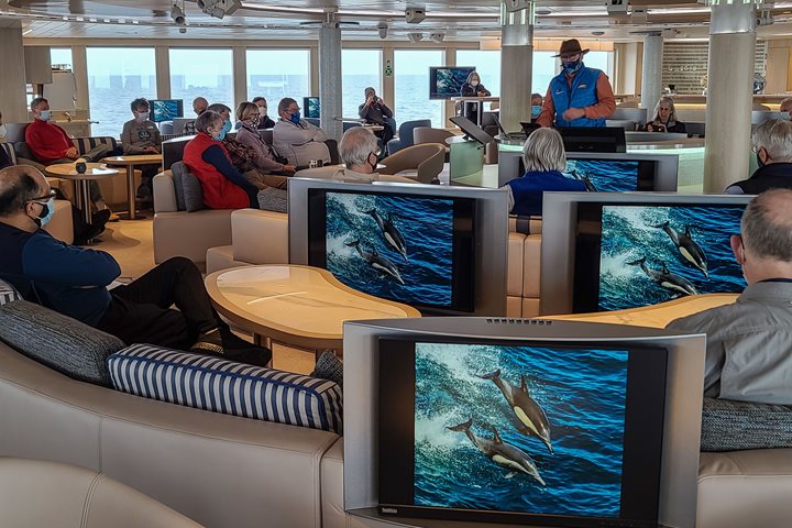 Naturalists taught guests how to identify bird species and provided tips and tricks to photograph the fast-flying birds. Our expert naturalist offered presentations on seabirds and their adaptations and on the oceanography of the Southern Ocean. These presentations sparked curiosity and deepened our knowledge.