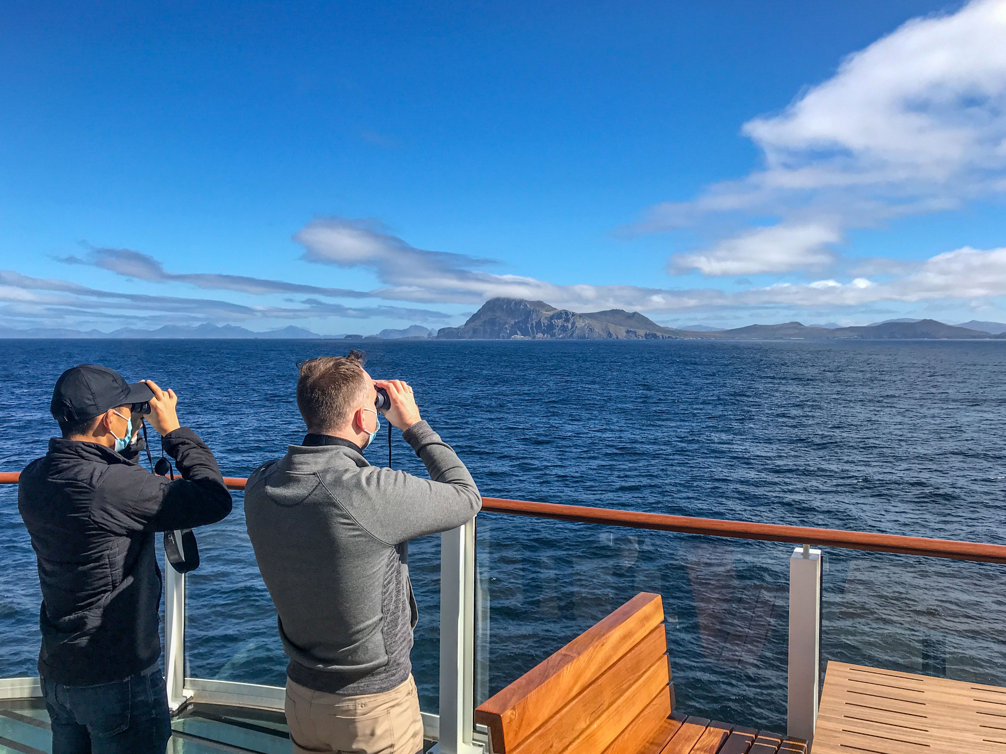 We awoke off the southern tip of South America as our journey to Antarctica drew to a close. Wandering and royal albatrosses swirled around the ship as we approached land. The wind dropped and the sun came out. Soon it was warm and glassy, and many marine mammals were spotted amongst the abundant flocks of birds, including many black-browed albatrosses, sooty shearwaters, and South American terns. A pod of hourglass dolphins was bowriding in blue, clear water along with both dusky and Peale’s dolphins. Later, many sei whales were also seen and photographed. As the afternoon progressed, we entered the Beagle Channel and made our way into our final stop of Ushuaia.