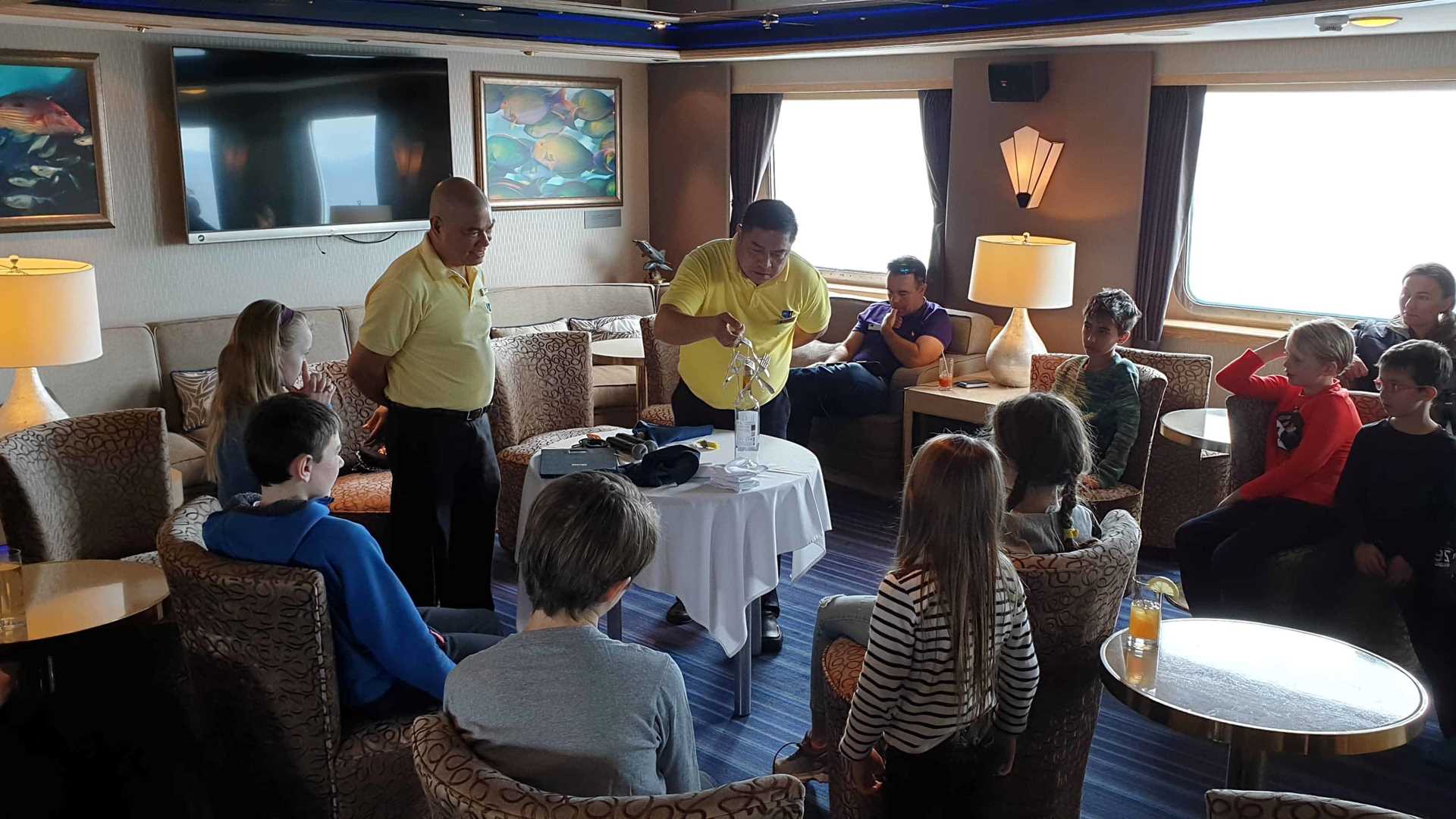 Marylou Blakeslee gave a thought-provoking talk about climate change in the Antarctic and led a conversation about ways to be ecologically mindful at home. Teddy With and Teddy Without entertained the kids and the kids at heart with a magic show. As the ship slowed down, there was a buzz of energy as we picked up the Argentinian pilot to guide us back to Ushuaia. As the ship meandered her way through the Beagle Channel, we were treated with stunning views of giant petrels, black-browed albatross, and imperial shags.
