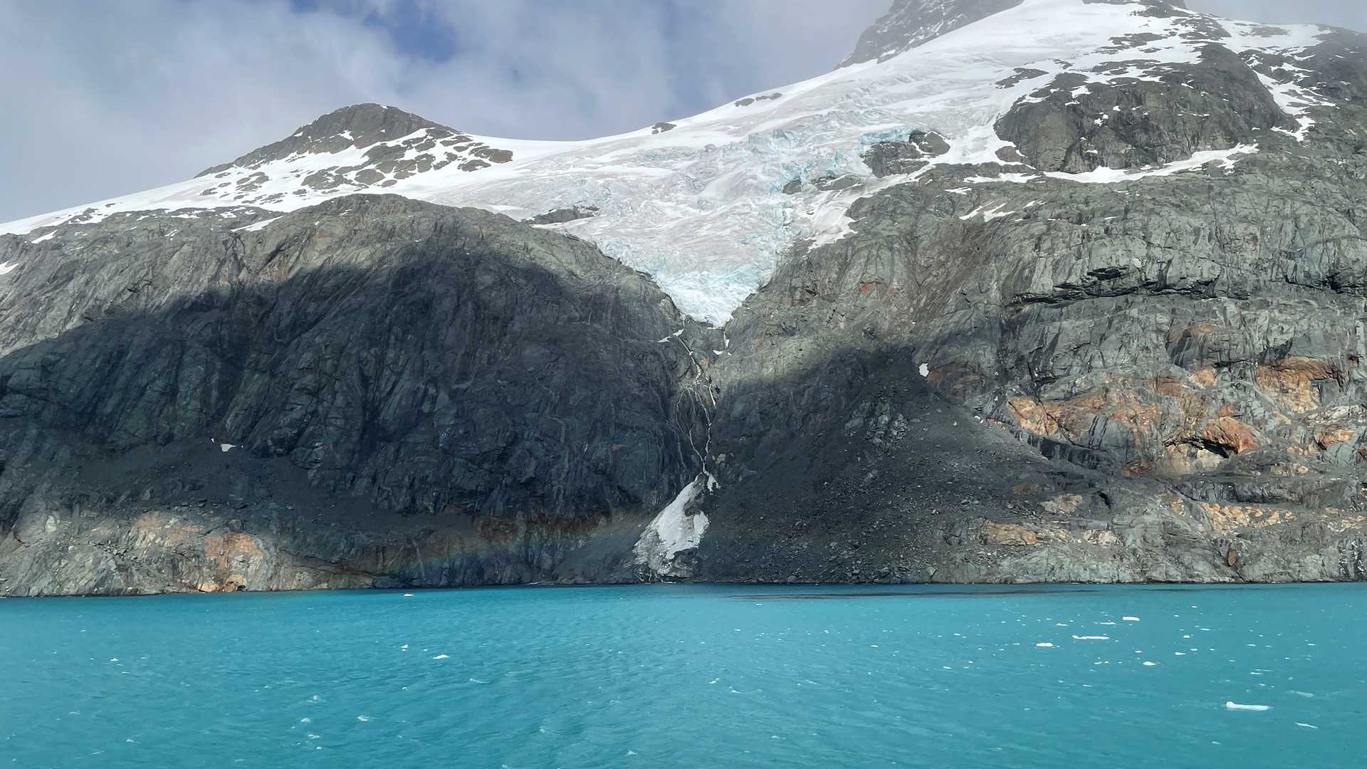 What a way to begin our time in South Georgia! The morning greeted us with sunshine and stunning views of the mountaintops, and we had rainbows galore. A light-mantled albatross flew around the rainbow. With everyone on deck, National Geographic Resolution made her way into Drygalski Fjord, the southernmost part of the island. We were treated to gloriously sun dappled mountain peaks towering over a thousand meters tall and hanging glaciers to the starboard of us. South Georgia shags flew overhead, and huge rafts of kelp floated to the port of us. We were utterly surrounded by beauty and graced with such amazing weather. With the expertise of the bridge team, we sailed all into the fjord to see the Risting Glacier before an amazing pivot back toward our afternoon destination.