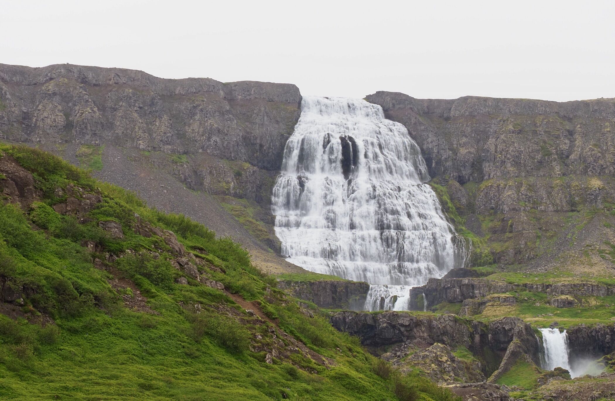 After a wonderful day in Isafjardardjup, we travelled back to the west during the night to visit the spectacular Dynjandi Falls. Our morning was dry with light clouds, perfect for the photographers among us, and we spent it exploring some seven or eight stacked waterfalls known collectively as Dynjandi Falls. While waiting for guests to arrive at the beach, naturalist Tim Martin attempted to capture an image of a dive-bombing arctic tern. Some guests opted for a long hike to the falls. Others travelled by Zodiac to a beach a short distance from the fall’s outlet to the sea, and they climbed a pretty rugged trail toward the top. As expedition leader Mike Jackson put it, everyone was welcome to climb as far as they wished, but no farther! By late morning, we were comfortably back on the ship, cruising to the east once again, and passing a seemingly limitless stack of lava flows. Next stop…Vigur Island.