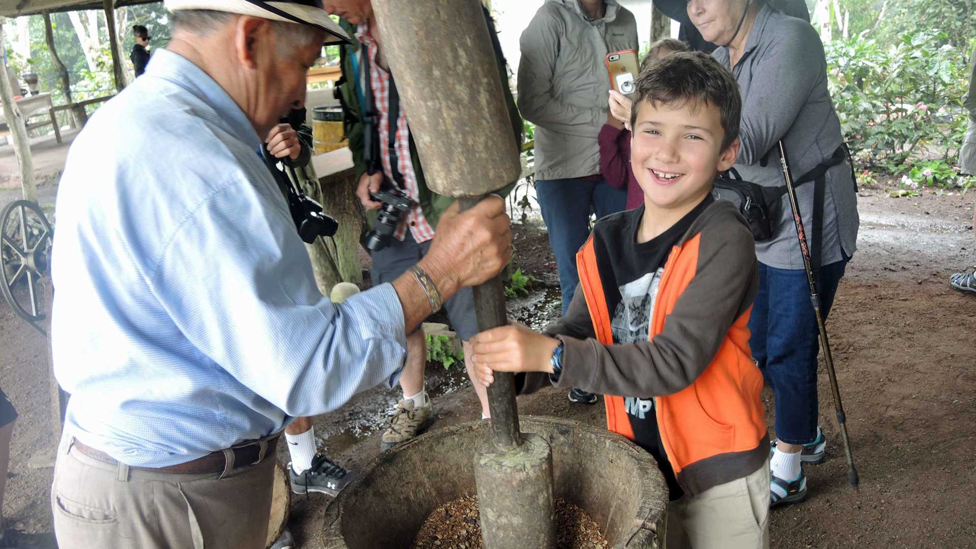 In the afternoon, we visited a private farm belonging to a family from the only discover but also taste the delicious products that they are produce, including coffee beans, chocolate, sugar cane, honey, and even moonshine!