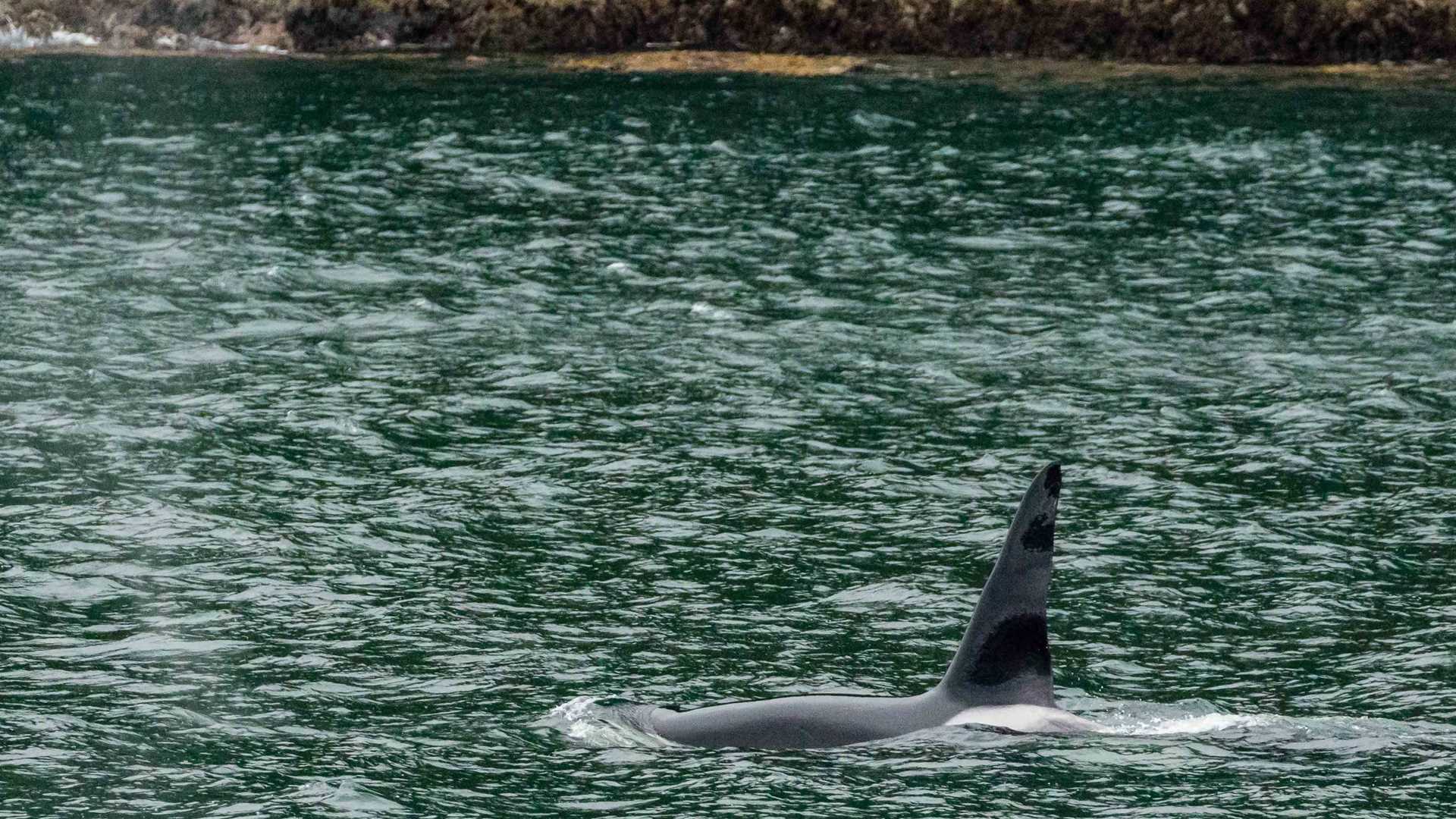We were treated to our first dolphin sighting of the trip before breakfast: killer whales. One male and one female killer whale were observed in close proximity as National Geographic Quest sailed through Holkam Bay, past Harbor Island en route to Dawes Glacier. That’s correct: killer whales are the largest members of the dolphin family. They have strong familial ties with the mother being the “lineage holder.” Adult males will stay with their mothers throughout their lives. There are two well-known types of killer whales. Transients tend to travel in larger groups as they hunt mammals such as harbor seals. They will not vocalize as much as resident killer whales since they are trying to ambush and sneak up on their prey. Resident killer whales will feed predominantly on fish and will vocalize a bit more with family members.