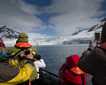 We cruised toward the glacier face in our expedition landing crafts, keeping a safe distance in case of calving ice. Suddenly a great tower of ice let loose and crashed into the water, creating a huge splash and tremendous thundering sound. Later a giant piece of ice broke off the underwater part of the glacier and dramatically surged to the surface. Smooth-patterned and deep blue, it soon became an attractive perch for a variety of gull species.