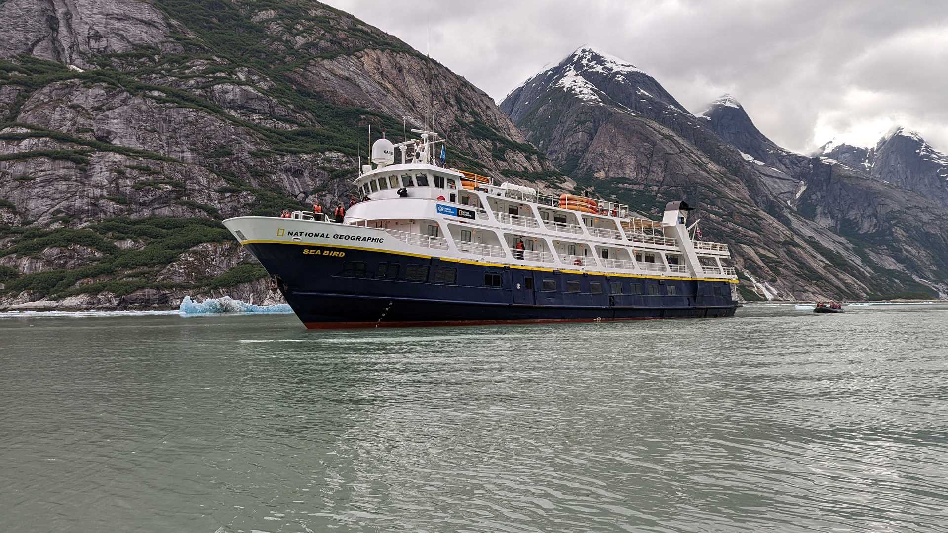 The voyage continues. After navigating through the Lynn Canal and then west to where the Cross Sound and the Gulf of Alaska meet, we anchored in Granite Cove, where our adventures began. In true Lindblad form, we rode Zodiacs from National Geographic Sea Bird to George Island, a former outpost during World War II. Just as we stepped onto the rocky shore, the clouds parted, and sunshine beamed upon us as if to welcome our exploration. Groups set out by foot and by kayak to take in the sights. We found a multitude of colorful lichens in the forest, seaweed on the beach, and sea stars in the tidal zones. No matter where we explored, we were bound to get great photos. Back on board, there was a buzz of chatter during lunch as we compared notes on what we saw. A quick repositioning of National Geographic Sea Bird brought us to “the Hobbit Hole” in the Inian Islands archipelago. Here, the color of the water is a striking teal. It’s the only entrance for the Pacific Ocean to pour nutrient-rich waters into the northern reaches of Southeast Alaska, so the chances of seeing marine mammals and seabirds are good. The afternoon Zodiac runs did not disappoint. We saw sea otters, harbor seals, rhinoceros auklets, and bald eagles…oh my! As we headed back to the ship in our Zodiacs, a light, cool drizzle began and gave way to a brilliant rainbow, uninterrupted by the buildings, traffic, or crowds we’re accustomed to. Lucky for us, we have a couple more days for moments like this one on our floating home.