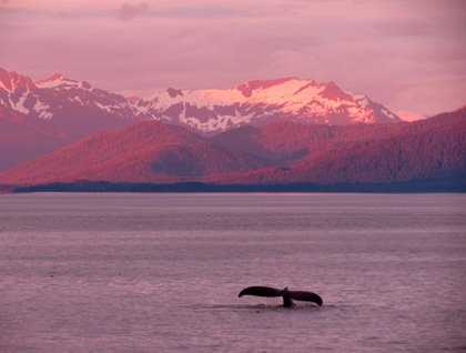 The day continued when humpback whales were spotted in Frederick Sound. They lunged at the surface with mouthfuls of krill, and then raised their tail flukes in a graceful slow-motion water ballet. The setting sun set the sky on fire and painted the mountain peaks with alpenglow. Our eyes feasted on a 360-degree panorama of spectacular Alaskan beauty.