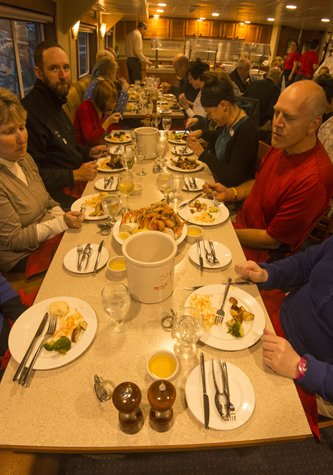 As we said goodbye to Endicott Arm, our goal became to look for whales, a search which we didn’t have to labor over long. The blow of several humpback whales soon appeared in the distance. Not concerned with our presence, they came close to the ship, feeding leisurely with shallow dives and resurfacing after short intervals, giving us plenty of time watch these graceful animals in their natural environment. At the end of the day, lively chatter about our experiences was evidence of a great day, and only our first one cruising the waters of Southeast Alaska.