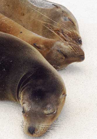 We had a busy morning. Some guests chose to explore the underwater world and made the journey to adjacent Gardner Islet, with its blue waters and playful sea lions. Several species of fish were to be found there, like the king angel fish, razor surgeonfish, and sergeant majors. After this magnificent experience we had a chance to visit the beautiful white-sand beach of Gardner Bay. The sighting of dozens and dozens of Galápagos sea lions lying on the beach was overwhelming! Some were sleeping, but many were up to something: wrestling, bodysurfing, courting, nursing. Just observing them was fun from beginning to end. Weather-wise, it was a typical cool season day, changing between fine mist and sunny spells.