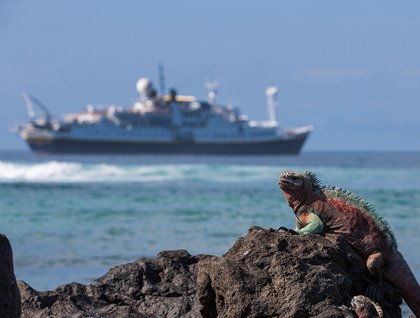 Our first outing took place in one of the most fascinating beaches, Gardner Bay, which is located on the northeast shores of Española. Our outdoor activities began with deep-water snorkeling for advanced swimmers, while our less experienced guests when to the beach to learn and improve their snorkeling skills. Both places brought amazing opportunities for wildlife viewing for our guests. The sea lions were playful today, and many of the immature sea lions approached our curious snorkelers. Guests were given their first taste of the busy, bright underwater realm in the Galapagos, which contains more than 500 species of fish that arrived to the archipelago from different provinces of the Pacific Ocean.