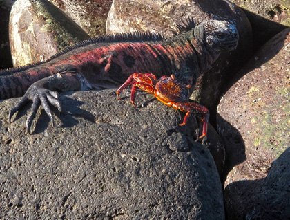 I was up very early this morning in order to make a few phone calls. A few phone calls you say? Just to the five cabins that had signed up the evening before for an early-bird kayak outing along the basalt bluffs of Gardner Bay. In the islands we are not allowed to place the kayaks on shore (besides which, the breakers, though small, would be hellish to deal with), so we have developed a wonderful method for embarking from Zodiacs. Off we went on placid waters, paddling leisurely. We saw a sea lion swim underneath one kayak, marine turtles pop their heads out of the water, admired the enormous prickly pear cacti trees on top of the cliffs, heard Española mockingbirds sing from above, and felt the day start to heat up as the sun rose quickly on the equator.