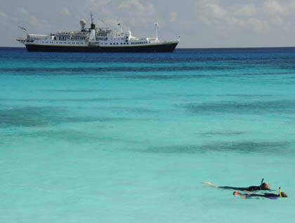 Kayakers explore the coast, as others walk the length of a brilliantly white coralline sand beach and laze among the sea lions. It feel almost as if we are on another planet, as we are accepted by the wildlife. A young sea lion rolls onto a beach towel, while Española mockingbirds fight over territory, and an occasional pacific green sea turtle pops its head above the surface for a breath of fresh air.