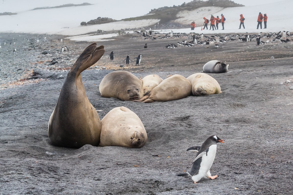 A day of colorful diversity and life awaits us as we start at Gardner Bay along the northern coast of Española. As the sun alights us we find that we are floating over turquoise waters, with a bright white, coralline sand beach in the distance. This morning we start our exploration of the undersea world as we head to the beach of Gardner islet. The water temperature is an invigorating 63° F as we enter the crystalline waters, immediately encountering a young Galapagos sea lion that decides to blow bubbles at us and swim circles around us. In the shallows we find cornet fish and Mexican streamer hogfish with the occasional damselfish protecting their algae “gardens”. Heading into deeper waters, a wall of vibrant invertebrates is before us, with bright orange cup coral standing out and chocolate chip sea stars lining the benthic area. A group of young sea lions start to follow us and swim with an incredible agility, as their mothers forage in the deeper surrounding waters. Galapagos sea lions can nurse for up to two years due to their relatively slow growth rate and low milk fat content of the mother’s milk, allowing them time to “play” along the shore, learning the skills to eventually be able to fish on their own. Landing on a long white beach, we are able to get a close look at the sea lions as they laze in the sun to recuperate their energy after long foraging runs offshore. We appear to be followed constantly by the Española mockingbird that is protecting its territory and searching constantly for sustenance during this dry season. Española’s older age in the archipelago allows us a chance to see what has developed uniquely over time on this chain of islands, in isolation from South America—many of these species are endemic only on this island.