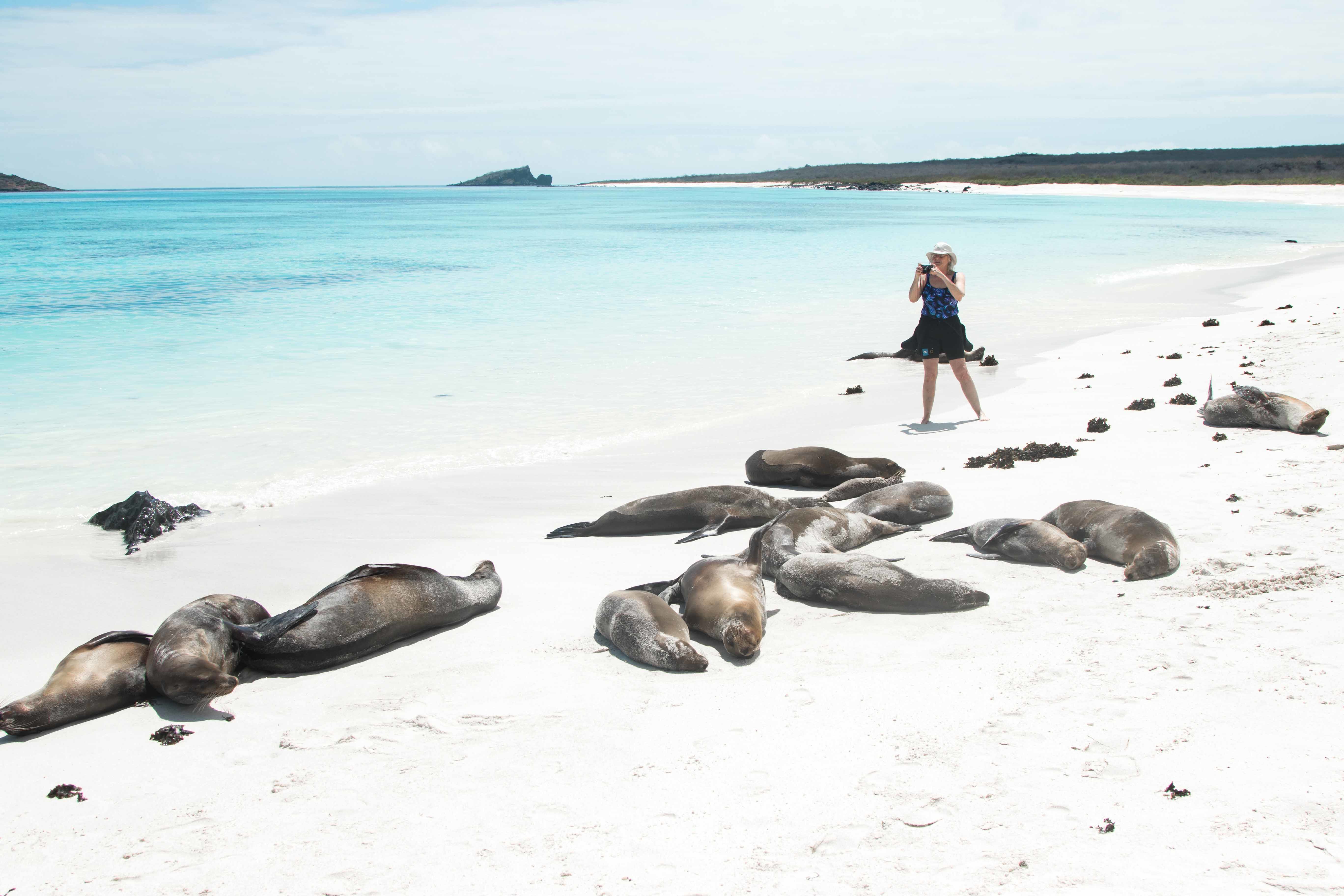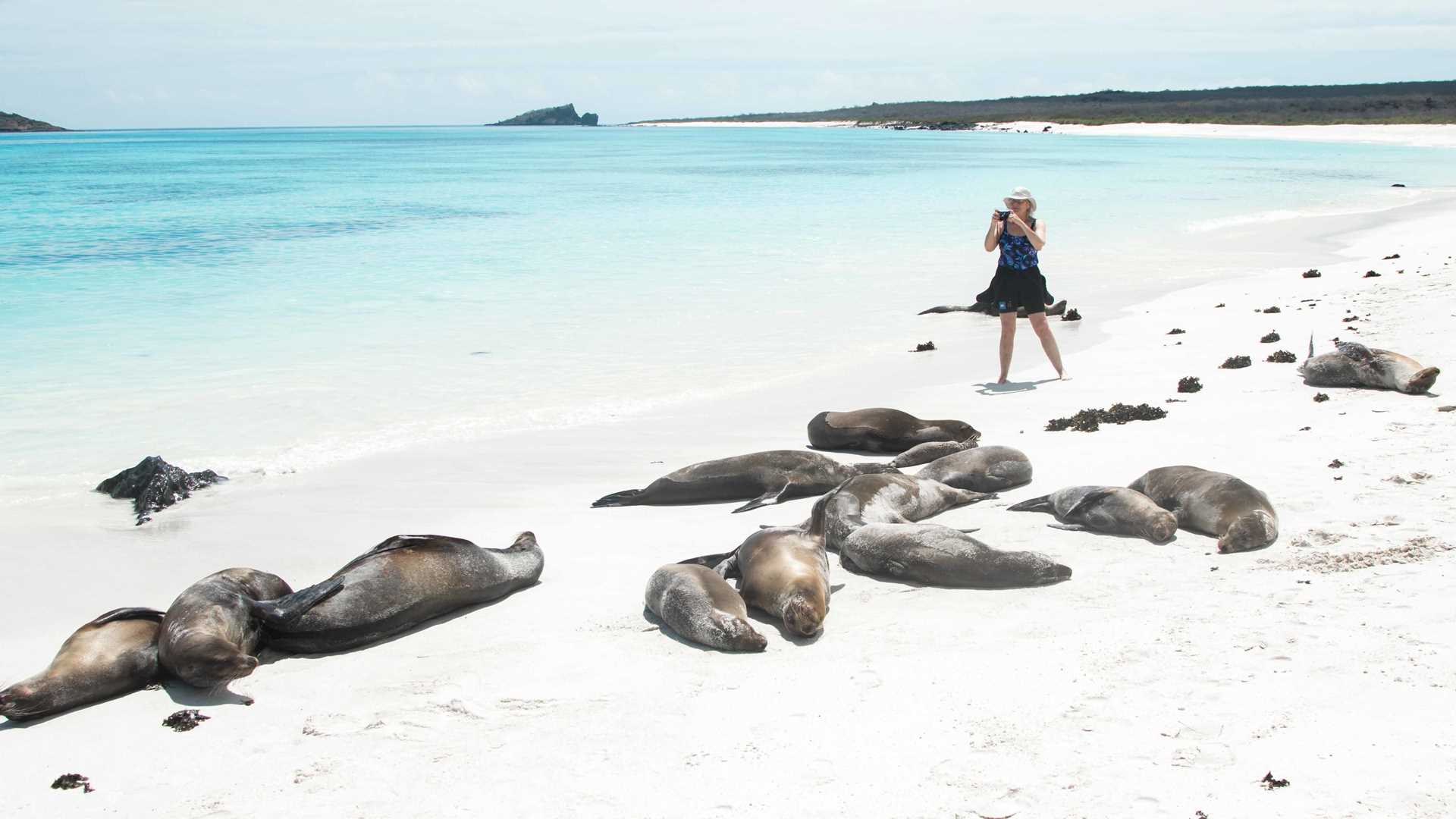 Our first full expedition day took place on the magical island of Espanola, also known as Hood Island. Espanola Island is about 3.2 million years old, which makes it the oldest of the Galapagos Islands today. Espanola Island have been geological dead for many years, and as you observe from a distance you can only wondered what type of life could live in such an inhospitable place full of lava rocks and dry forest. As you set foot on land all your wonders fade, as you experience the overwhelmingly beautiful life on Espanola Island, a life given by its surrounding rich nutrient waters. In the morning we woke up to a beautiful sunrise and a calm sea to go kayaking, and we observed many pacific green sea turtles mating. The rest of the morning we spent it snorkeling in Espanola crystal clear water and walking along its white sand beach, where a colony of sea lion come to rest. While we were having a typical Ecuadorian lunch, the Capitan moved the National Geographic Islander to the south flank of Espanola and in the afternoon we disembarked in Punta Suarez. Along the walk we had very close encounters with Christmas iguanas, numerous sea lion pups, endemic mockingbirds and lava lizards, Nazca boobies and the majestic Galapagos Hawk. A truly magical day to start a magical trip!