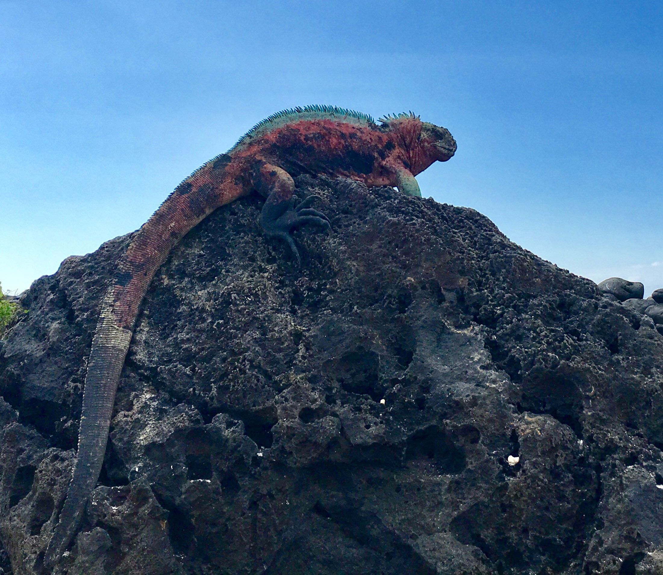 afternoon hike. Colorful marine iguanas warm themselves upon the rocks and sea