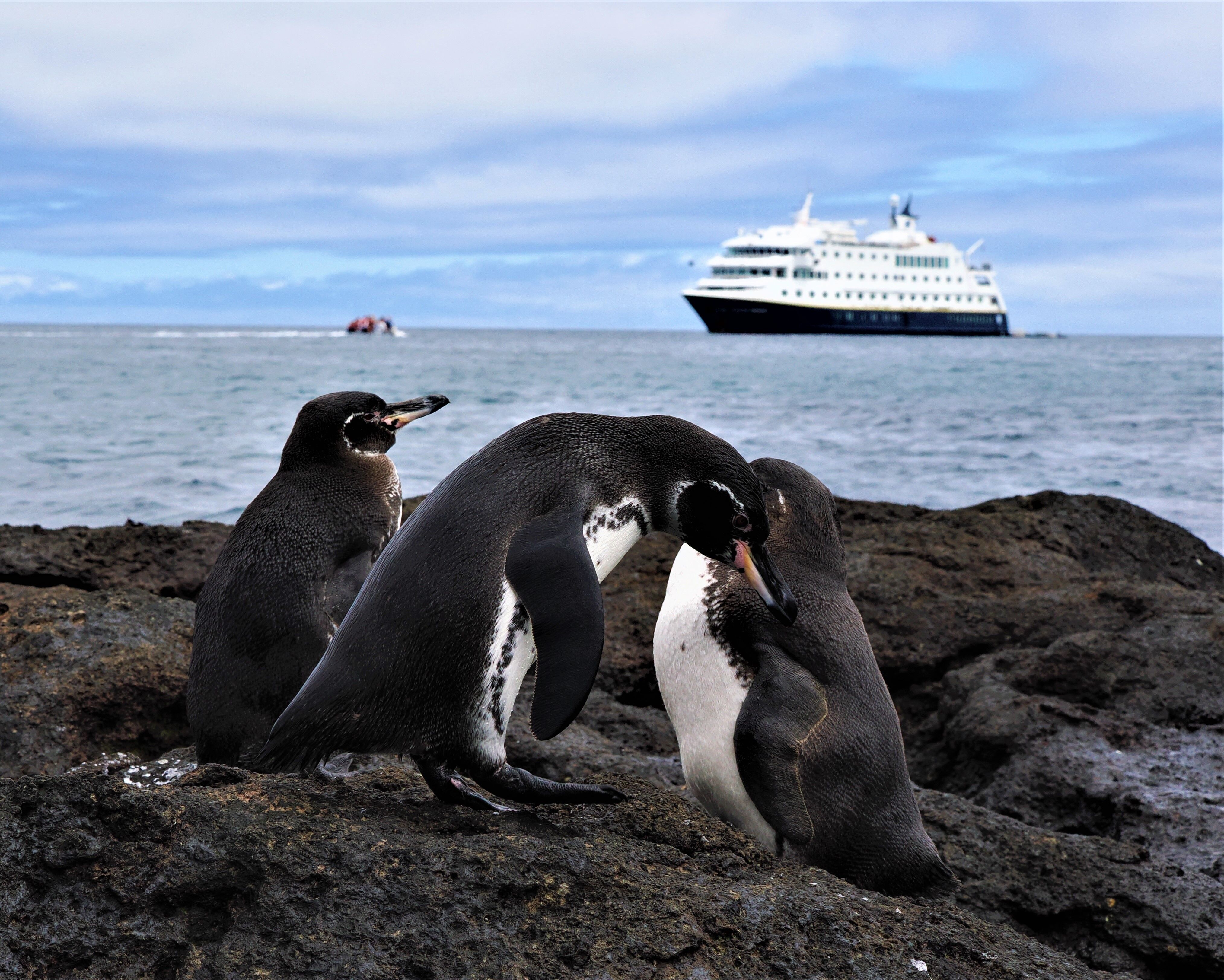 While walking back along the shoreline, a large number of marine iguanas were already resting on the rocks after their feeding activities. To finish our expedition, we had time to take photos of the blue-footed boobies diving in the bay. We had a great sunset, snacks and cocktail waiting for us when we returned aboard.
