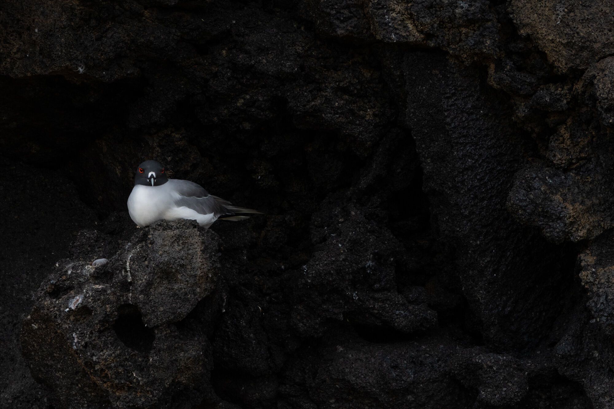 After a delicious lunch, our Capitan repositioned the National Geographic Endeavour II to the western point of the island, Punta Suarez. It is one of most interesting visitor sites of the Galapagos, with so many species of animals, especially birds such as Darwin finches, Española mockingbirds, Galapagos doves, and Nazca boobies in a large number resting on the cliffs while preening their feathers. We saw many waved albatross on the ground during the reproduction season. Waved albatross have been considered endemic to Española Island, even though they are not on the island all year around, because it is the only piece of land where this particular species nests in the entire word. Around 12,000 pairs come back to Española to nest every year.