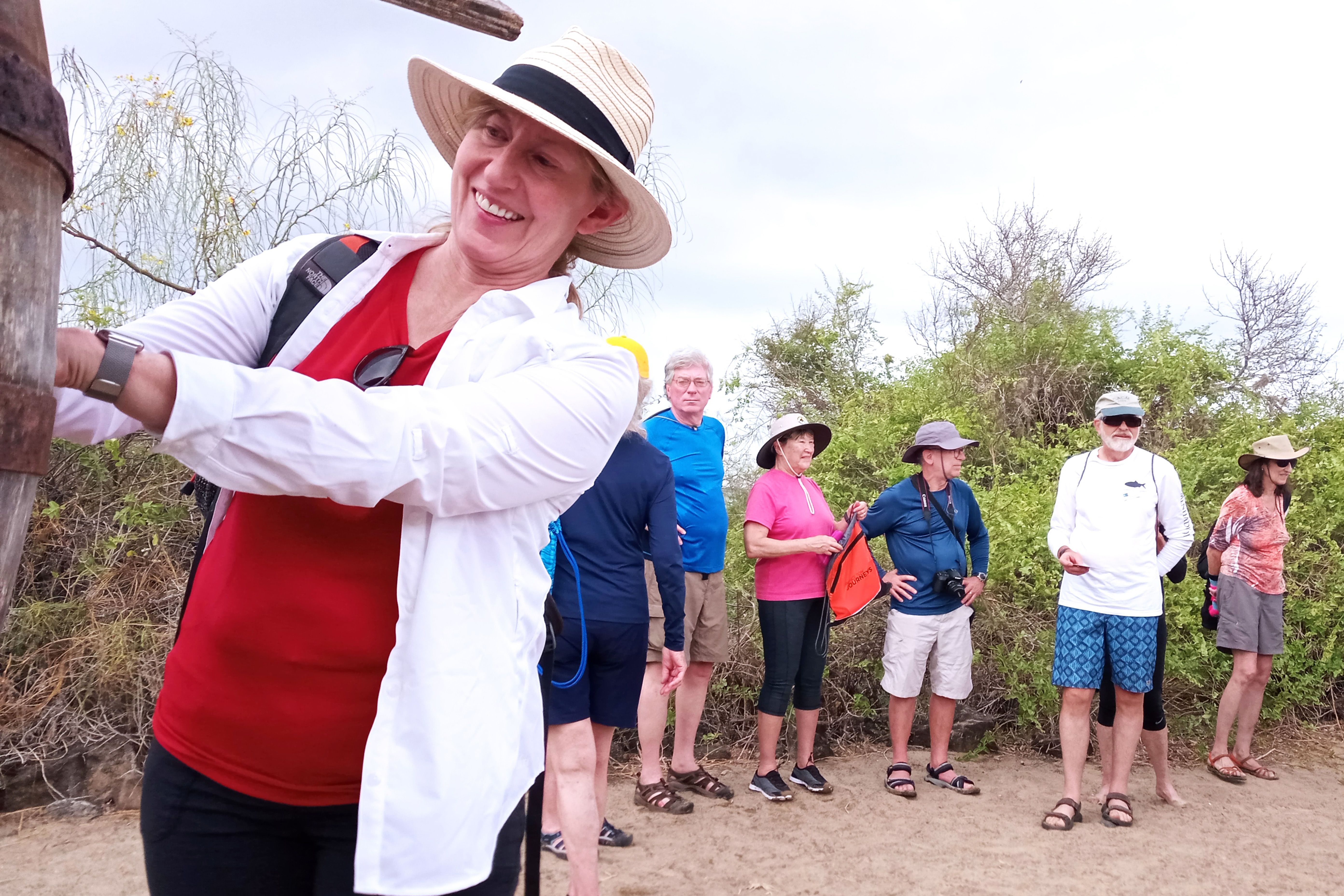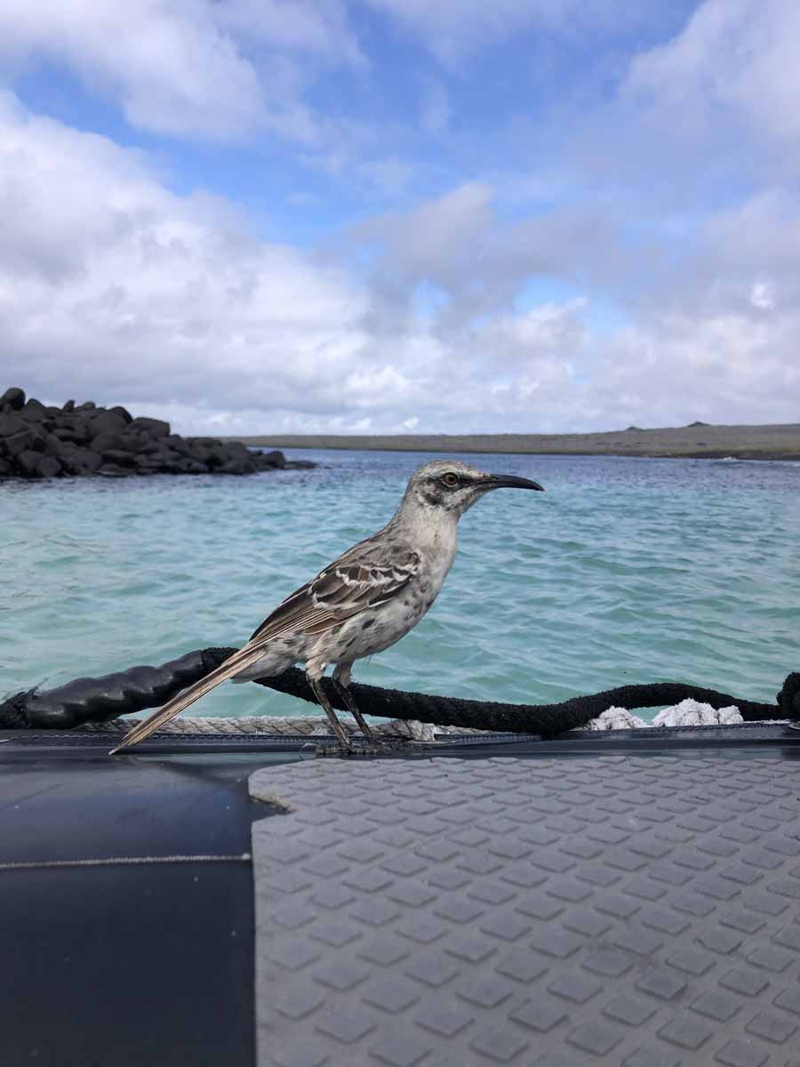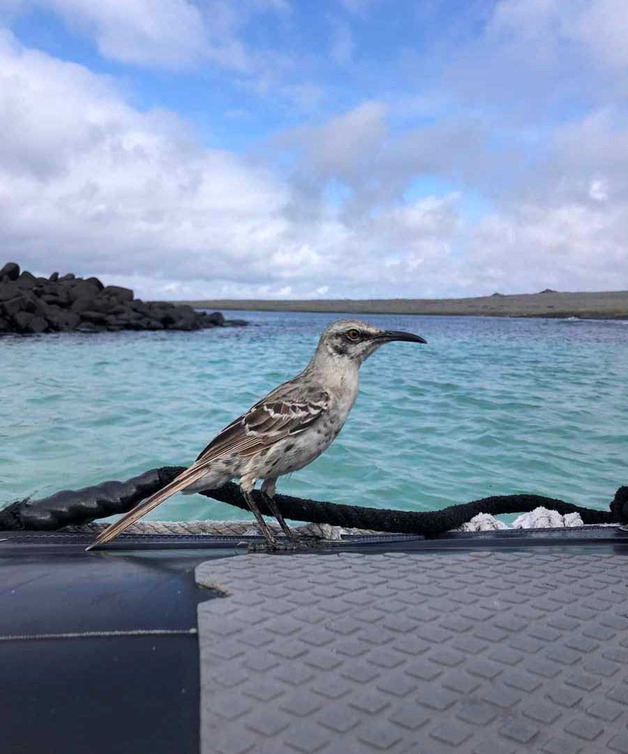 Later in the afternoon we went ashore. We were welcomed by many marine iguanas that look like dragons. We were able to learn a lot more about the Galapagos sea lions while we enjoyed the view. The path led us to the interior of the island where we spotted albatross, Nazca boobies, and blue-footed boobies. Enthusiastic land birds such as mockingbirds, finches, warblers, and Galapagos doves charmed us on the trail.
