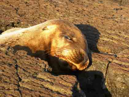 The walk along the shores of Puerto Egas was a peaceful hike. Along the lava tubes and tuff formations, iguanas, shore birds and Sally light-footed crabs decorated the beautiful landscape with color and life. Sea lions and Fur seals enjoyed of the last light of the day by laying down in the most amazing positions over black lava! After this walk we all felt inspired by nature and its wonders. I will leave you with our guest Leslie Wolkowitz’s words: “Creatures of the land and creatures of the sea; in the Galapagos they are free to just be.”