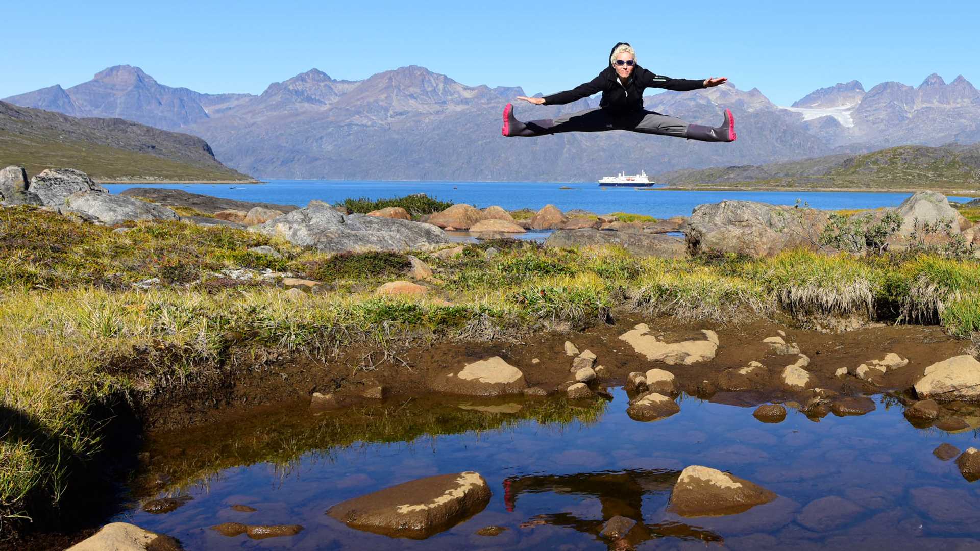 The sunny weather and calm seas allowed for a variety of outdoor activities. Kayaking tempted many, whereas other guests preferred hiking, a Zodiac cruise, or a combination of the two. The hikers headed into Paradisdalen (”Paradise valley”). This valley has a richer vegetation cover than other places we have seen along the East Greenland coast. The hikers found lots of dwarf birch, some of which had already turned into autumn colors. There were also crowberries, blueberries, mushrooms, and a variety of lichens along the way. Like most of the other uninhabited parts of Greenland, this fjord area has maintained its stunning, pristine character.