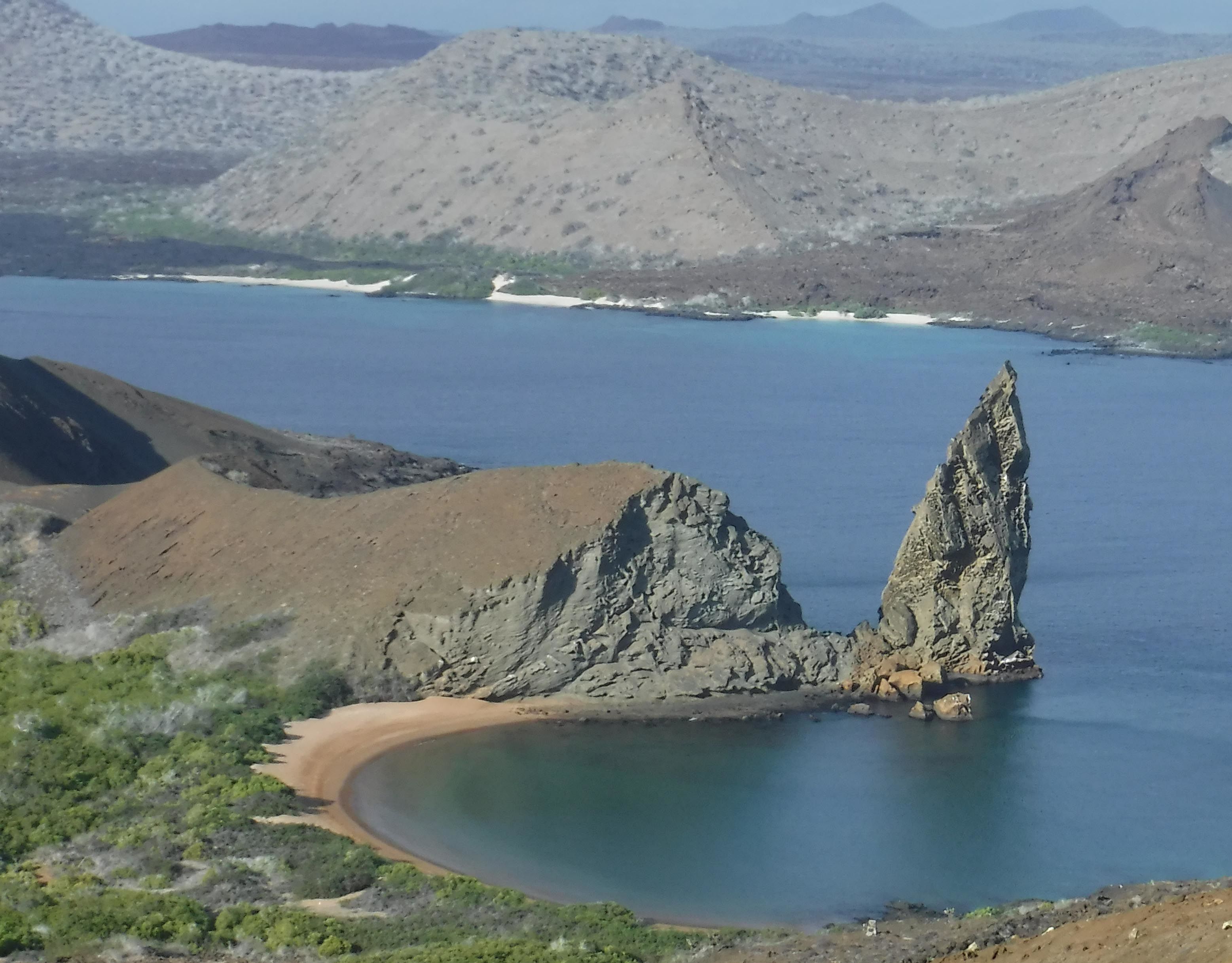 On National Geographic Endeavour II today, we explored Bartolome, home of a small colony of Galapagos penguins. Bartolome is one of the youngest islands, and it is located next to Santiago Island in the central part of the archipelago. After an amazing sunrise, we went ashore for a walk, and we were transported back to a time when the land was newly formed. We began our day by hiking to the top of a tuff cone known as the islet of Bartolome, named after the First Officer of The Beagle . Walking on this young island allowed us to understand the formation and volcanism of the Galapagos Islands. The rocks are a great way to understand the area and its geology. We spotted a few lava lizards and painted locusts, some of the very few animals on this island. As we reached the top, we had a great view. Our guests enjoyed the magnificence of Pinnacle Rock. After we visited one of the most iconic geological formations of the Galapagos, our breakfast was enhanced by dramatic views of the impressive volcanic landscape. We visited the beach near Pinnacle Rock, where we enjoyed how the sun made the sand sparkle due to a concentration of silica. Later, we went snorkeling along the channel between Santiago and Bartolome Islands. Many of our guests spotted whitetip reef sharks and very colorful parrotfish. The landscape was beautiful with lots of sea stars. We enjoyed the chance to be surrounded by Galapagos penguins and feel accepted as part of this environment. After a delicious Mexican lunch, we had lectures on the photography of reptiles and Darwin. Afterwards, we went to Chinese Hat Islet to snorkel from the Zodiacs. The area is home to a small colony of Galapagos penguins. In a sandy-bottomed, sheltered channel, our guests enjoyed swimming with whitetip reef sharks, rays, and many fish. It was a nice and sunny afternoon. After snorkeling, we had the chance to explore the unique, small volcano that formed an island in front of Santiago on a sunset Zodiac ride. After a spectacular day full of activities in the field, we returned on board. Every day in the Galapagos is an opportunity to reconnect with the beauty of nature through unbelievable encounters!