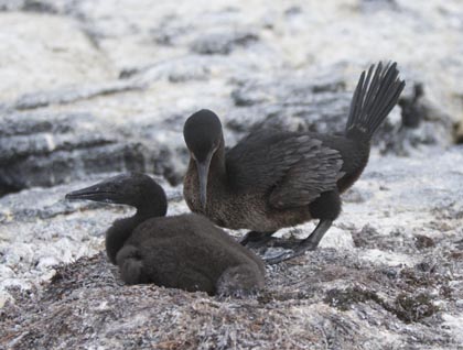 Fernandina Island was formed by a very young volcano and its colonization is just taking place. There is no way to calculate how long it may take for the ecological niches to be filled or for outside species to arrive. This area is very productive and that is the reason it has one of the largest marine iguana colonies in the Galápagos. It also has 70 percent of the Galápagos penguin population and the whole population of Galápagos flightless cormorants as well. As with every place in our planet, there is a top predator and in this group of Oceanic islands, it is the Galápagos hawk. It was very impressive to see a juvenile hawk catching its own food, a baby iguana. This may have been its very first catch because the marine iguana almost escaped the hawk’s sharp claws.
