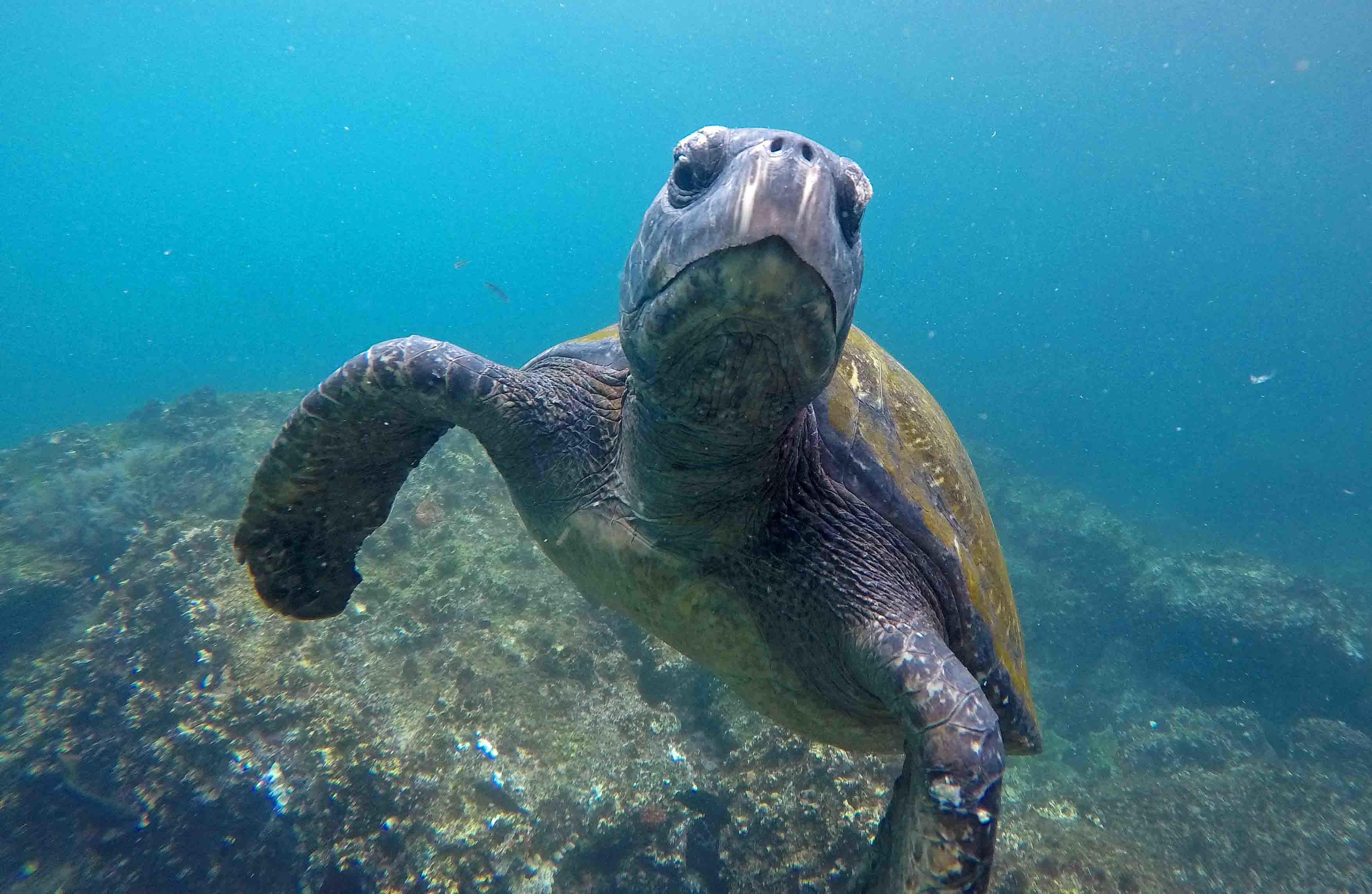 Heading to the western territory of the archipelago, we awoke surrounded by shield volcanos. We explored Fernandina Island early this morning, where we walked among colonies of marine iguanas, flightless cormorants, Galapagos hawks, and sea lions. We also had a wonderful time snorkeling with Pacific green sea turtles and marine iguanas.