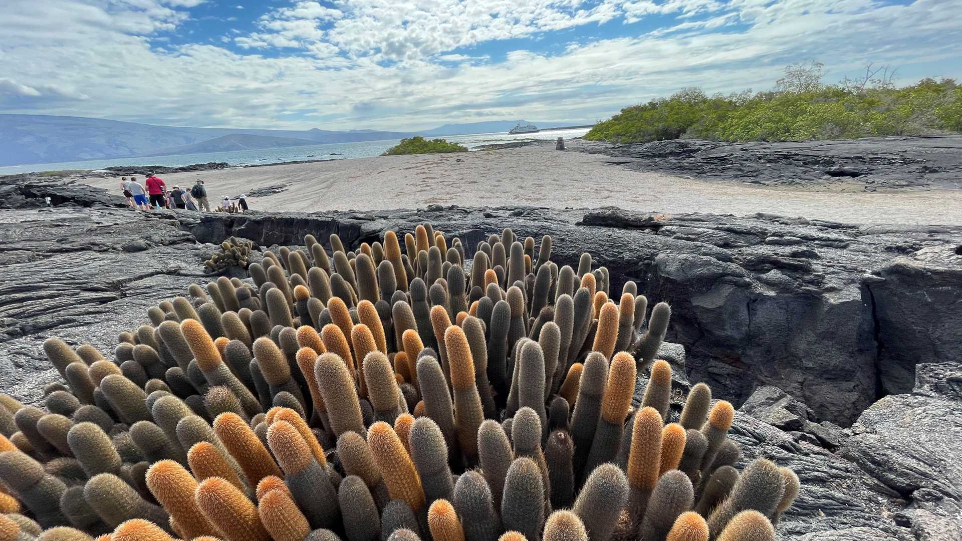 As we walked farther in, a young male Galapagos sea lion greeted us. He watched everybody from the trail before moving off toward sleeping sea lions.