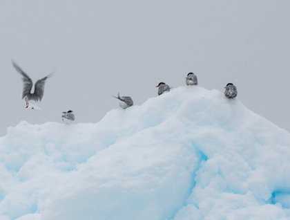 While the sea is mirror calm, large snowflakes waft gently onto the surface, alighting so gently that no ripples disturb the serenity of the moment. When these waters are graced with such tranquility you can see the infant stages of sea ice beginning to form. Almost oily looking slush starts to form what is called “grease ice” as the salt water begins to separate and freeze. Gradually, before our very eyes, the grease ice begins to coalesce and form small plate-sized discs that the slightest wave would break apart but in this windless period are allowed to proliferate and merge with other plates, or “pancakes”. This is how the massive sheets of ice form that will double the size of the Antarctic continent in the months to come, expanding out from every direction, attaching to land and becoming “fast”. With no threat of becoming beset our Zodiacs explore this peaceful winterscape, engines purring softly through the flows. Crabeater seals lounge on bergs and while Antarctic terns elegantly flit about with enviable grace. And while eventually it is time to leave this secluded stop and get back to the plan, it is perhaps the knowledge that it is purposely a plan to deviate from that makes this feel like an expedition.