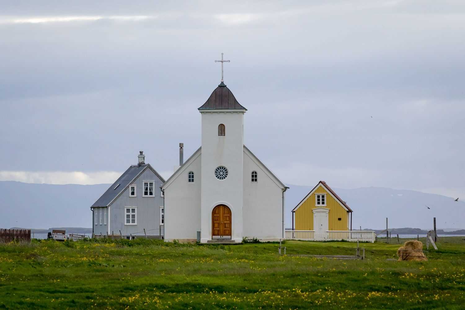 Following Knutur’s performance, we meandered through the grass fields of Flatey toward one of the island’s main highlights: the church. Built in 1926, the church features paintings and murals by the artist Baltasar Samper, a Spaniard with Icelandic citizenship. The murals showcase some of the region’s wildlife, such as the white-tailed eagle (Haliaeetus albicilla), as well as a representation of a Nordic Jesus Christ.