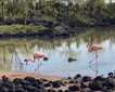 We made a landing soon after lunch onto the exposed reef flat, and then spent a couple hours or so exploring this densely vegetated island with an amazing, hard-packed coral rubble beach all around the outer edge. Some interesting sea turtle tracks were noted right near the landing, showing us that this must be an important breeding site for these beautiful creatures (at least one green sea turtle was seen earlier by some of the snorkelers). Those who went ashore this afternoon were able to walk on the beach and meander through the narrow band of tournefortia bushes that seemed almost as though they had been planted for someone’s pleasure. Most of the island is covered with coconut palms, including both mature trees and countless thousands of sprouted coconuts that have filled in most of the gaps between the trees. It was actually difficult walking over the coconuts that nearly covered the ground in some places. Inside the dense forest, we were able to view many white terns and black noddy terns perched or nesting overhead in the cordia and pisonia trees, as well as lots of tiny skinks crawling around the leaf litter. However, the most exciting creatures encountered onshore were the immense and somewhat creepy coconut crabs. These impressive beasts are the largest terrestrial arthropods on earth. They can tear open coconuts with their huge pincers! Many of us also enjoyed a walk/wade in the shallow reef water where several young black-tipped reef sharks, finger-lipped mullet, and a peppered moray eel were spotted in the large, open tide pools.