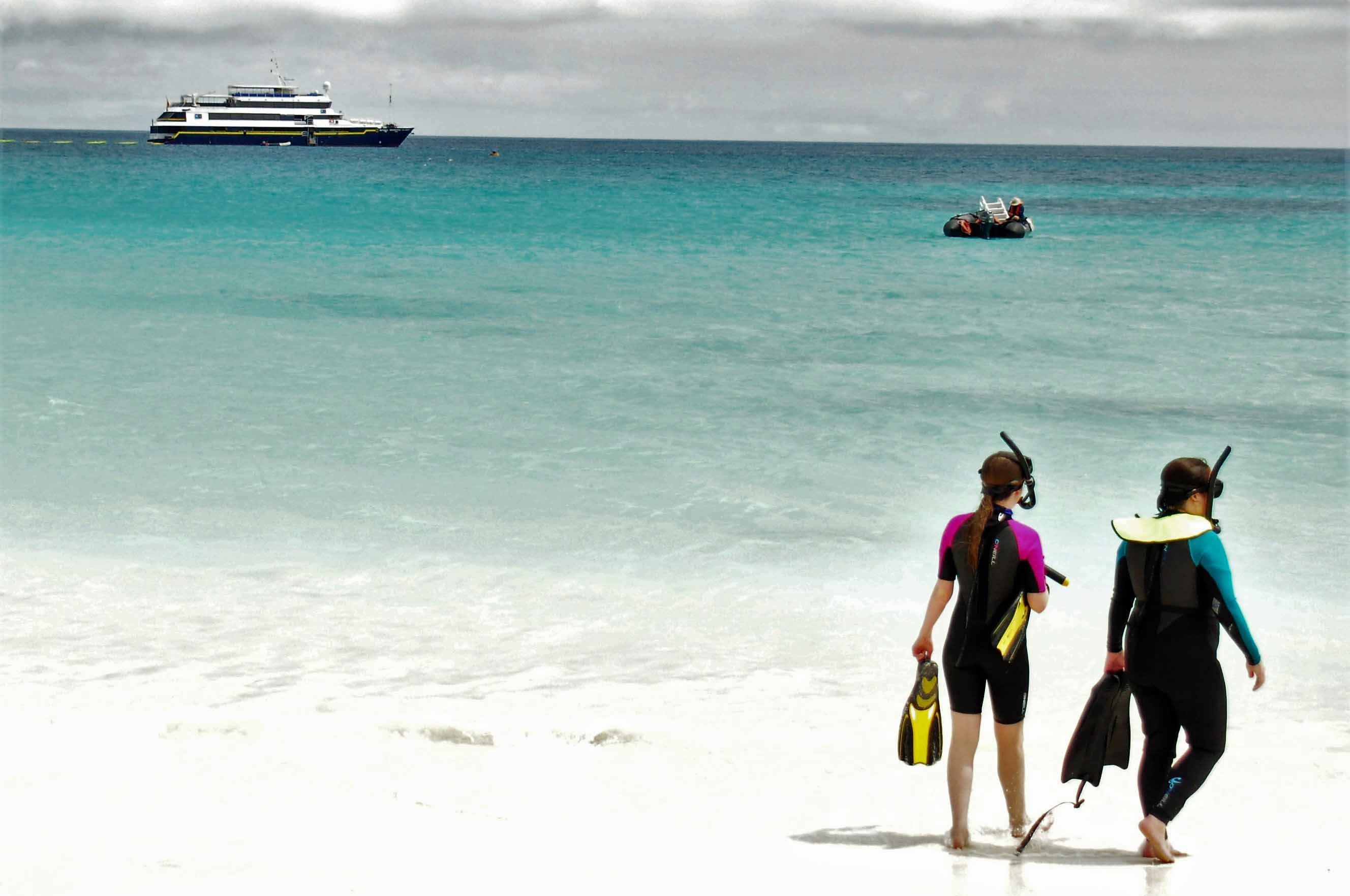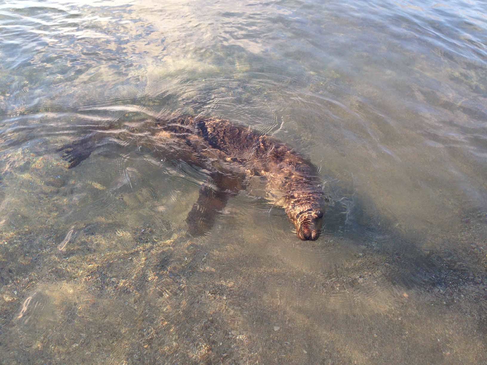 After the hike, we had a wonderful breakfast, and soon after we went snorkeling. When we were snorkeling, several playful sea lions approached to us, very curious to investigate these very clumsy fellow swimmers. We also saw a great variety of fish of the Galapagos, and a very interesting underwater topography.