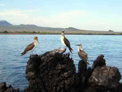Early in the morning we headed to Punta Cormorant with its green beaches dotted with sea turtle tracks. Along the bushes some pelicans rested, attentively watching the ocean looking for fish. After walking a long the trail awhile, we reached a brackish lagoon occupied by some flamingos, black necked stilts, pintails and whimbrels feeding on crustaceans, while along the palo santo trees yellow warblers fluttered indicating the arrival of rainfall. We arrived at the second beach which, white in color, contrasted with the olivine beach we first visited. We observed a turtle dragging its heavy body to the ocean, leaving behind the evidence of hard work. It takes great stamina to make the nest, lay her eggs and make her way back to sea.