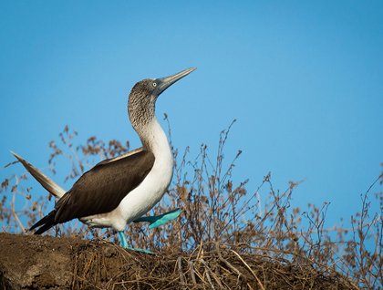 It is the third day of our voyage in the Galapagos Archipelago. Our exploration today began with an early outing for our guests who are interested in photography. The rest of our eager explorers went for a hike to the interior of the island. Both groups had the opportunity to walk among dancing blue-footed boobies, as they engaged in courtship rituals right before our eyes. Our guests were given a great opportunity to learn more about the natural history of the island, while they also experienced the occasional challenges of nature photography.