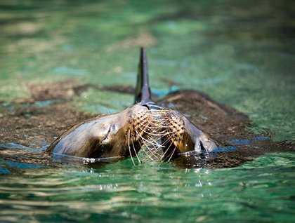 This is an island of beauty and mysteries, an island which has it all, from flamingos to colorful fish, from shark schools to mangrove lagoons, from cinder volcanoes to interesting stories about crazy baronesses and toothless dentists. We started our activities with the first light hours, taking advantage of every minute under the sun, and under the water as well. Punta Cormorant, a before breakfast outing, welcomed us with the aroma of holy trees, similar to incense, but sweeter. We encountered flamingoes, finches, and sea turtles, learned about the arrival and establishment of plant species and many wonderful tips about photography. After breakfast we played with sea lions while snorkeling around Champion islet, at its best in visibility.
