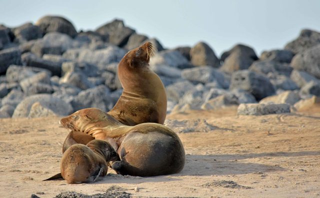 After hot showers, lunch and siesta, I gave a talk about Charles Darwin. He spent several days on Floreana Island and it was here that his attention was drawn to the fact that tortoises from different islands had noticeably varied shell shapes. In the afternoon we visited Post Office Bay, taking postcards home to hand deliver and leaving our own. Jason took a group kayaking and Christian, Pato and I took our guests on Zodiac cruises among islets as the afternoon light turned golden. We all had a marvelous time and we saw eagle rays, a huge marble ray, sea turtles, playful sea lions and three Galapagos penguins!