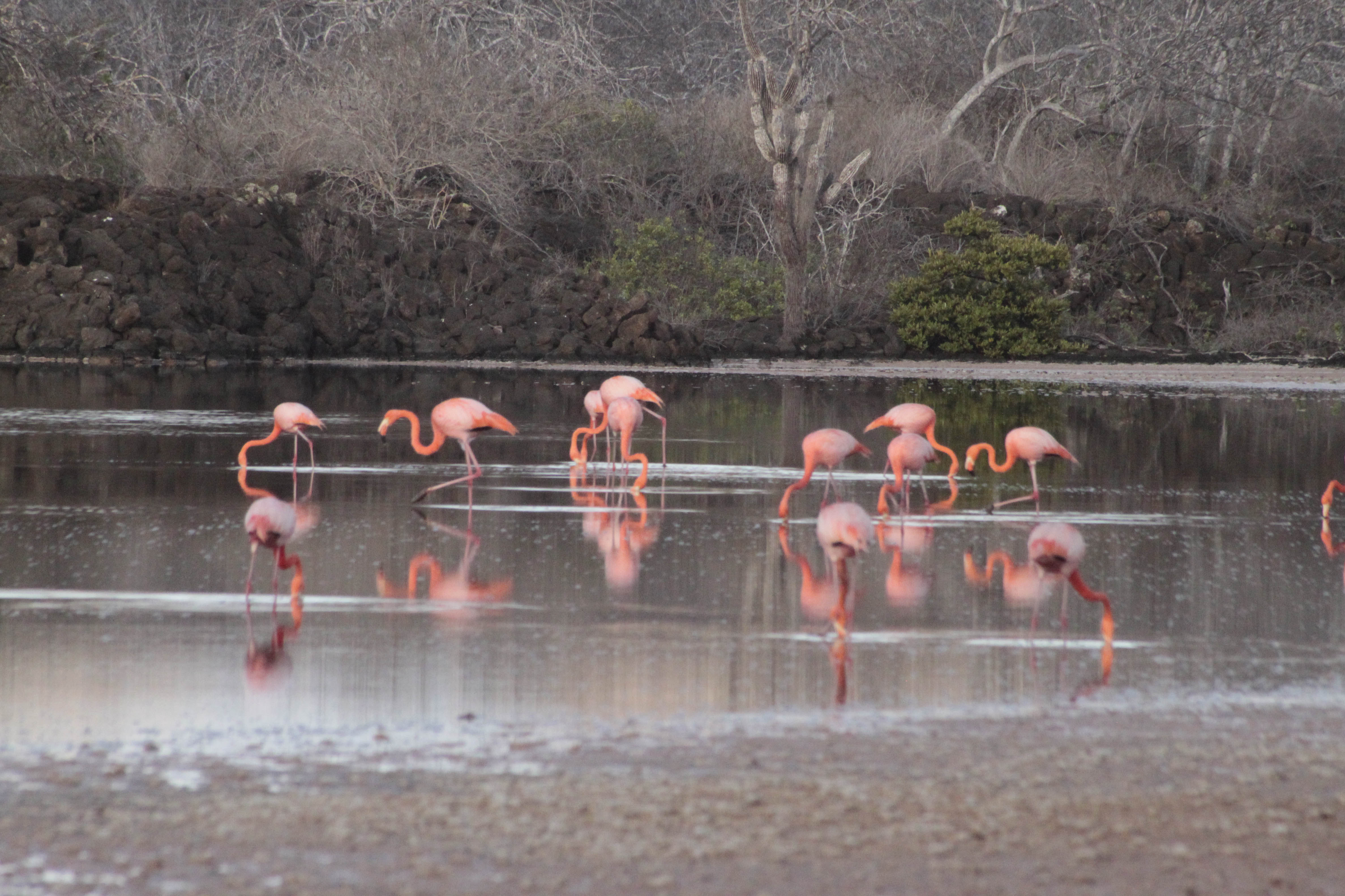 We began our day with an amazing early morning walk at Punta Cormorant. A group of sea lions welcomed us on the olivine beach, allowing us a great opportunity to take pictures of them. As soon as we approached the lagoon, we saw many Caribbean flamingos, Phoenicopterus ruber. These stunning birds undertake unseasonal migrations from lagoon to lagoon according to local food abundance. There are approximately five hundred individuals within the archipelago, and we had the chance to see a few of them.