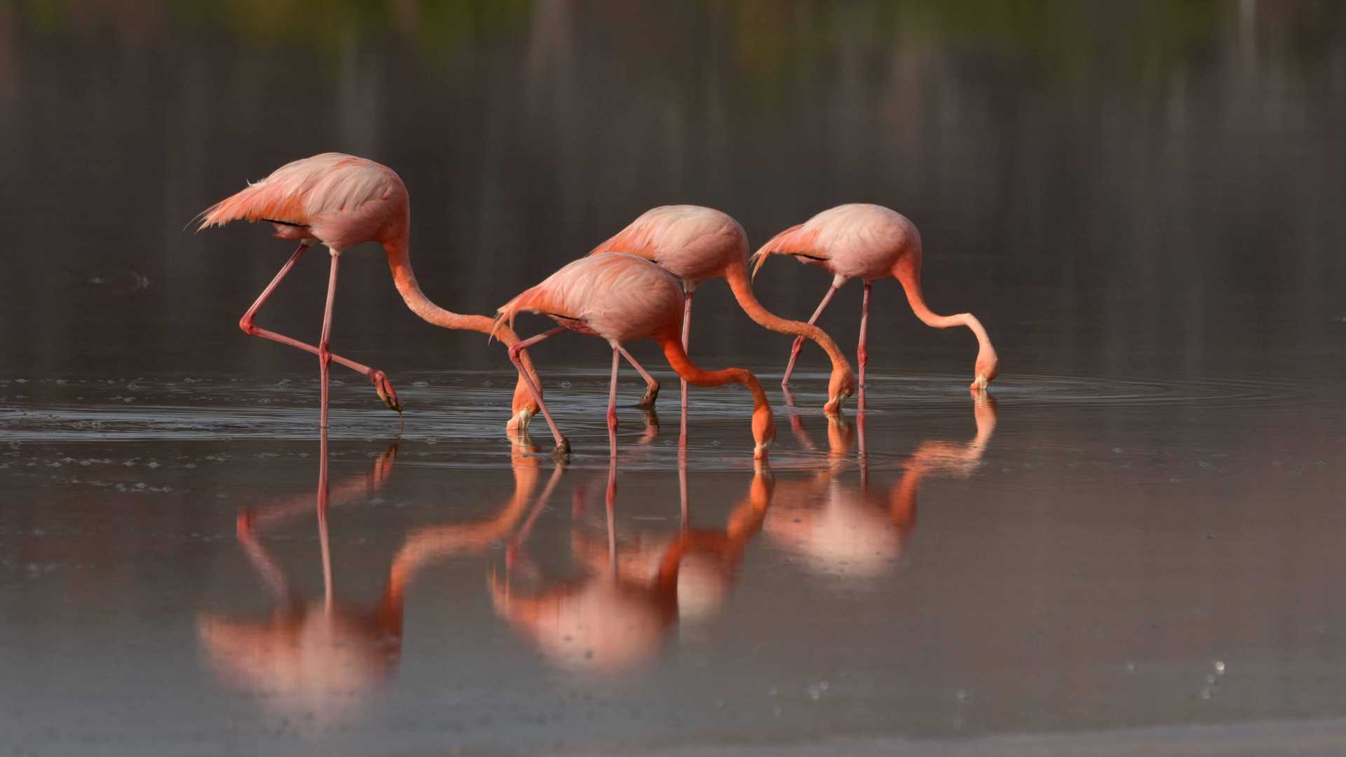 We are beginning our week with a lot of energy and our guests are very enthusiastic about exploring and learning about these enchanted islands. Today we are at Floreana, a very historical and legendary place in Galapagos, known as the island of mysteries and tragedies. Ecuador claimed the islands in 1832, and Floreana was the site of their first efforts to build a population in the archipelago. Today we are visiting three spots: Cormorant Point, Champion islet and Post office bay, in that order. So we landed early at 6:30 am, when the sun light is best for photography, and many of the sea creatures are more active. The beach where we landed has some sea lions and sea birds, the sand is greenish because of the large amount of olivine, a glass found in basalt formations. We found an adult blue-footed booby feeding its chick, the sunlight was perfect on them, and the blue feet contrasted with the green color of the sand. A magical scene! Then we walked behind the beach to a big, brackish water lagoon. There we found few greater flamingos feeding on the very nutritious ooze. These birds are very pink in Galapagos due to the amount of artemia salina, a type of shrimp rich in carotene. The morning was fabulous with a lot of surprises, including many land birds everywhere, such as finches, yellow warblers, and flycatchers.