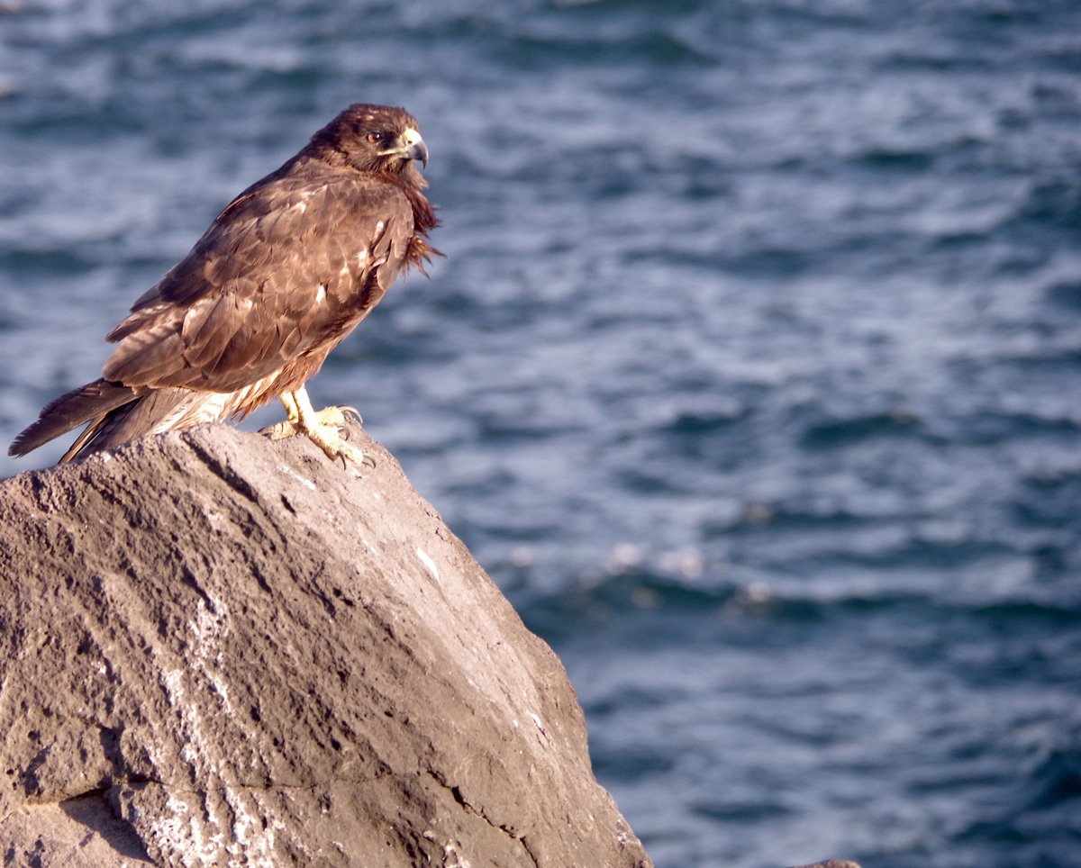 The colors and contrasts between islands are incredible as we navigate to a central island in the archipelago of Galapagos. Floreana historically has been important as one of the only consistent sources of fresh water in the island chain. We start early at Cormorant Point landing at an olivine crystal sandy beach with a grey incense tree forest inland. As we cross an isthmus to a white coralline beach which is where we notice one of those contrasts, two completely different beaches and origins within a few hundred meters. In the dunes we find large indentations which are an indication of the nesting behavior of the Pacific green sea turtle. High overhead magnificent frigates hover searching for the meal of the day. As we move close to the small waves as they crash upon the shore we encounter various diamond sting rays which appear to be feeding as the waves upturn small crustaceans. As we walk on the path it is hard to imagine that this area was occupied by feral goats not so long ago, damaging the delicate environment that is island ecology. Currently there is a restoration plan to return Floreana to a time before major damage was incurred with introduced species. As we continue the morning we navigate to the small Champion Island which is a satellite island that holds a small population of Floreana mockingbirds which have almost gone extinct due to invasive species, hopefully they can return to the main island soon as it is restored without the threat of damaging invaders. We eventually enter the cool waters at Champion to find an underwater environment rich in various species as young sea lions jet by us and large schools of king angel fish feed all around us.