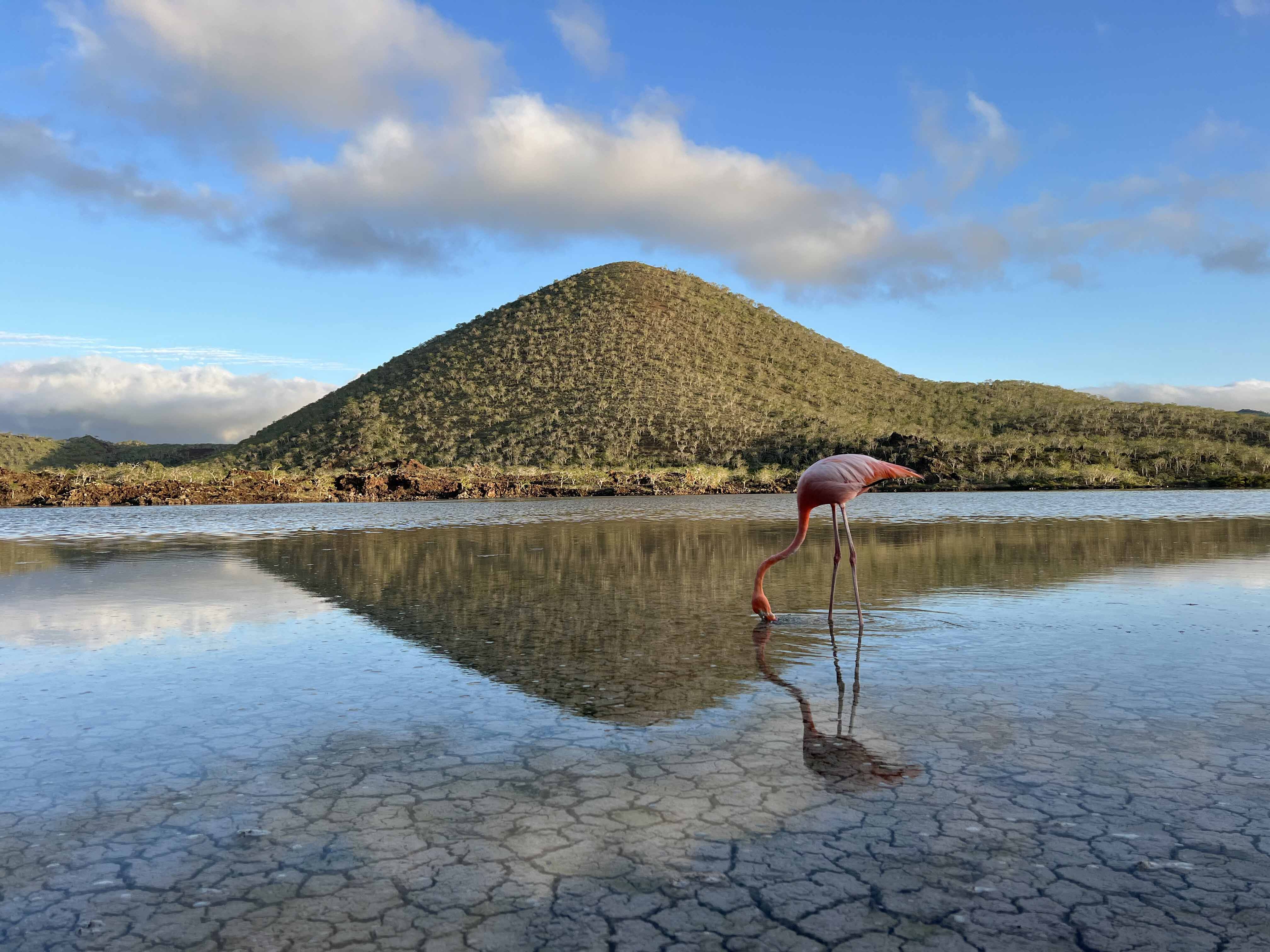 We started our day with a pre-breakfast activity to visit Cormorant Point, one of the best places in the Galapagos to see pink flamingos and the nesting areas of Pacific green sea turtles.