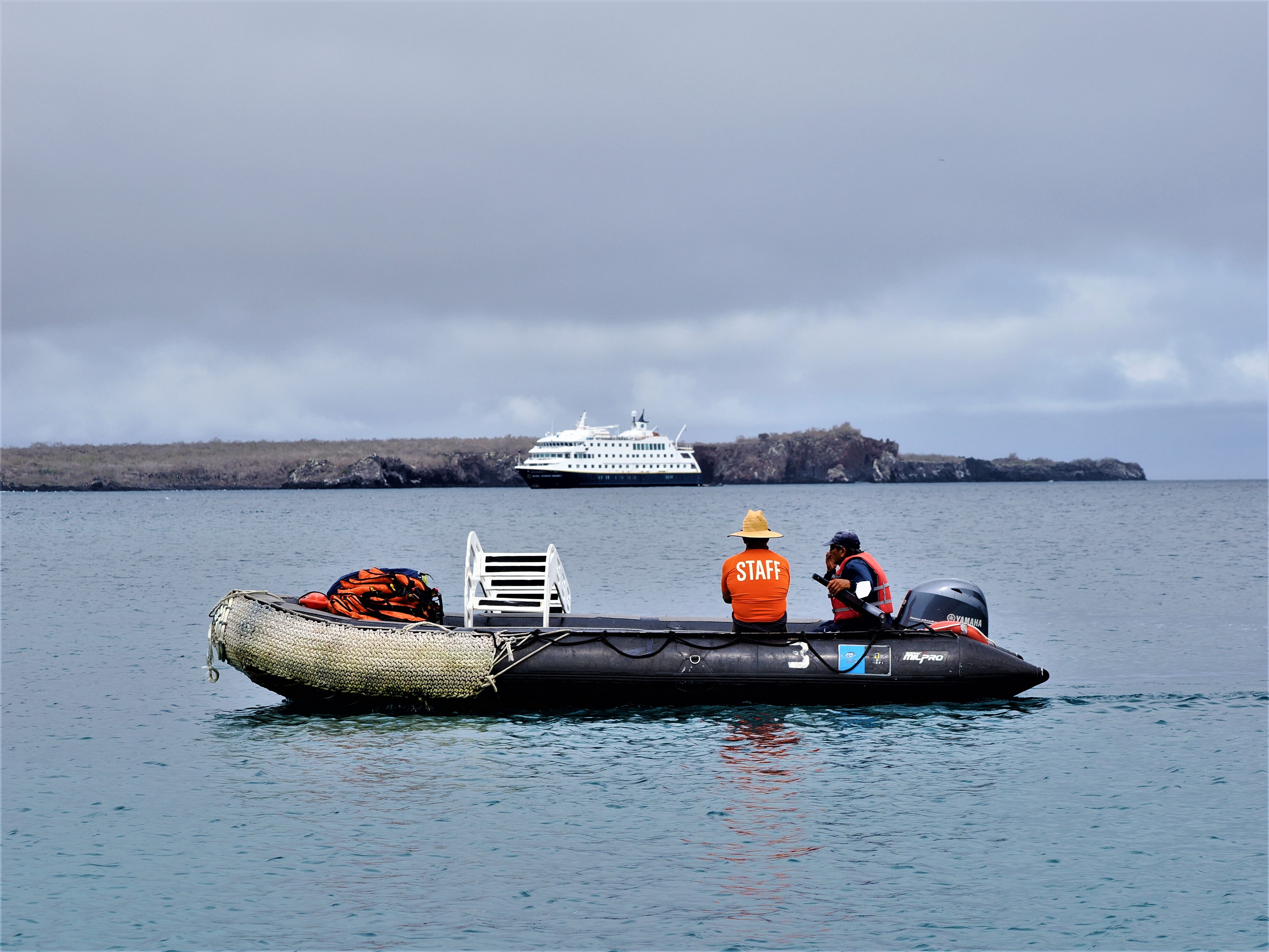 In the morning, we landed on the locally named “green beach.” The greenish coloration of the sand comes from the presence of a semiprecious stone called olivine. Olivine is formed close to the surface and in low temperature conditions when a volcanic eruption takes place. After landing in this very interesting spot, we walked towards a beautiful brackish lagoon, which is a feeding area for flamingos. Our guests had the chance to admire this amazing bird, endemic to the islands. Later, our excursion ended up at “flour beach,” named after the very fine texture of the sand. This beach is an important nesting area for Pacific green sea turtles and a resting site for cartilaginous fishes, like sharks and rays.