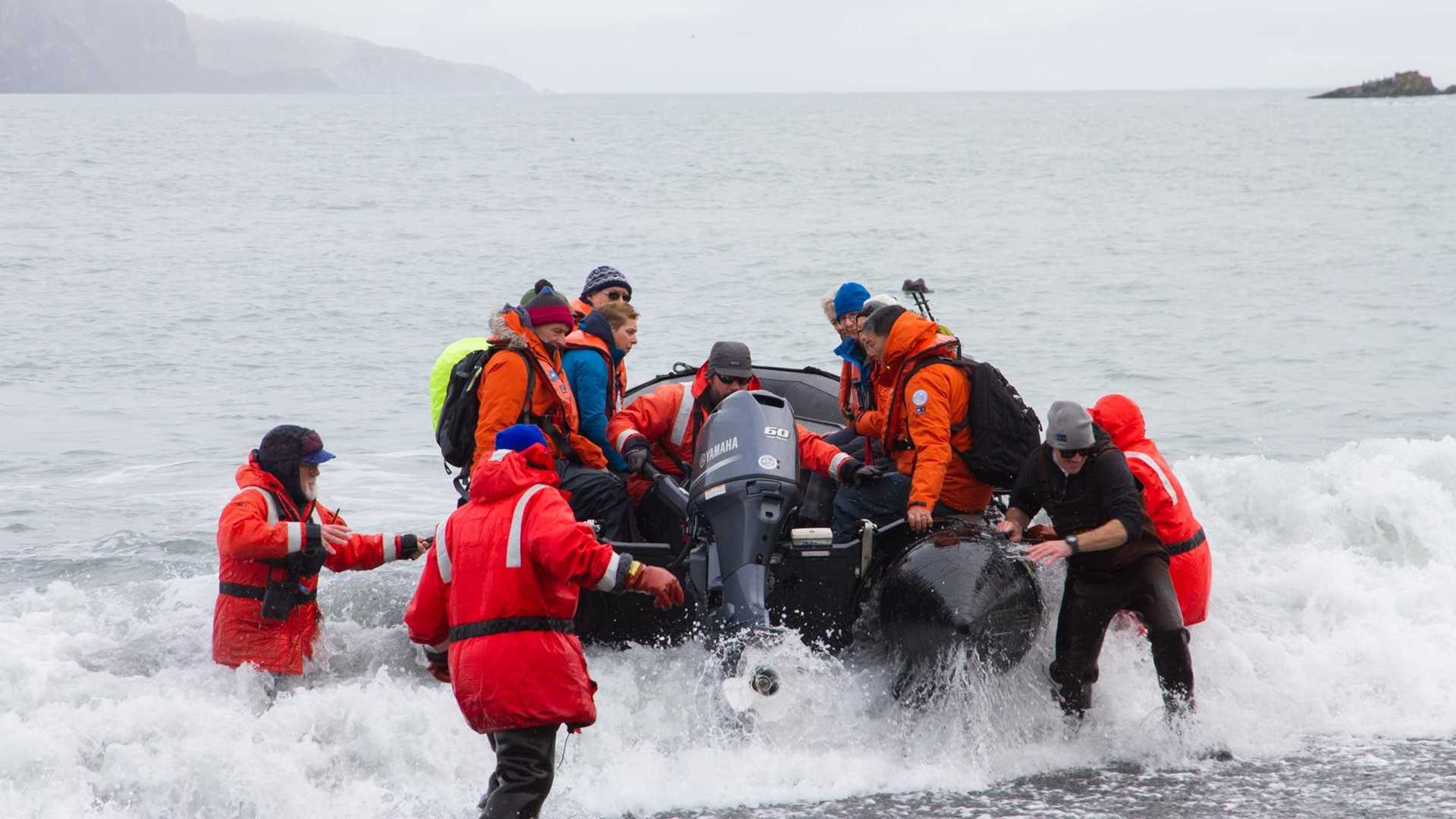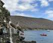 After a wild South Georgia initiation, all on board finally got to experience this incredible destination in the sunshine. After an early breakfast we made our way out for an epic day of expedition exploration. On the landing at Fortuna Bay, Zodiacs endured some rough conditions but all made it ashore safely and we were soon hiking our way out of the bay, retracing the footsteps of the Boss. The initial climb was masked by the fog but the sun began to burn through by the time we made it to Crean Bay. Before we descended to the Shackleton Waterfall the spectacular mountains could be seen towering up into the sky. After lunch Zodiacs were again in the water, this time for cruising in the beautiful Hercules Bay. All enjoyed magnificent views of light-mantled albatross and the waterfall but the highlights were the macaroni penguins. The hardy, crested penguins were forming a conveyor belt that moved out of the surf and up the steep mountainside to their colonies in the tussock.