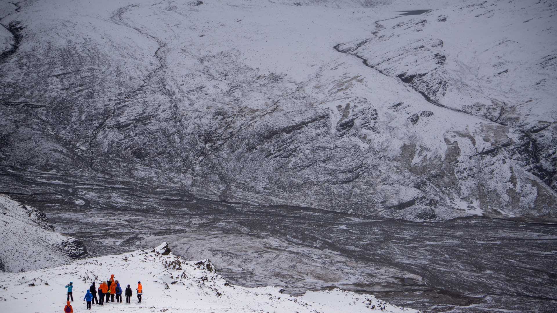 For nearly a week now, we explored the uninhabited expanse of the White Continent, including towering glaciers and abundant wildlife. There was virtually no sign of human life along the way, save for the scattered research station. Today, we continued our voyage into the Weddell Sea towards James Ross Island and Snow Hill Island to explore the human stories of the region and tales of early expeditions. Our morning began at James Ross, a relatively uncharted island. Ice crowds its shores, cutting off accessibility for much of the year. Hikes and Zodiac tours offered views of unique geology and of Snow Hill Island, our afternoon destination, across the way. There, we visited the historic hut from the 1902 Swedish expedition led by Otto Nordenskjöld. We learned about the team’s true saga of survival from historian Carol Knott. The afternoon’s polar plunge followed by a sunset cruise through a maze of tabular icebergs in Iceberg Alley topped off an amazing day. It was a perfect send off from the peninsula as we begin to make our way north toward the Shetland Islands and a final day of adventure.