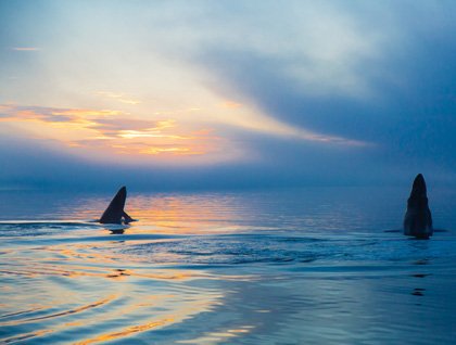 We continued our whale watch with our ears. A thick fog enveloped the National Geographic Sea Bird, and we could hear whales with their explosive exhalations nearby. As we crept along, a pair of whales started to slap their immense pectoral fins on the water. The percussive slaps helped direct our attentions as we struggled to find focus in the fog.