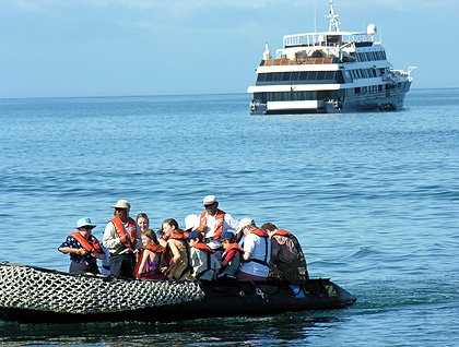 A warm and sunny morning in Gotham City… that is a good beginning for a TV show or even for a good story, but what we are experiencing this particular morning is not a story; this is a new day in the Galápagos. We are still sailing at breakfast time and the view we have from the ship is already inviting. We are approaching Urbina Bay on the western side of Isabela Island.