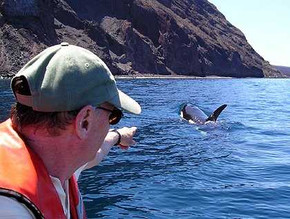 A refreshing morning mist covered the shores of volcan Ecuador while we sailed towards Punta Vicente Roca, where we Zodiac rode in search of the gigantic Pacific Sun fish or Mola mola. We then snorkeled along the shores of volcan Ecuador’s collapsed caldera and… there they blew! A couple of spectacular Orca whales came around the Islander just as we were loading back snorkelers into our Zodiacs. We rushed after them and we enjoyed one of the best hours of our lives! A big Orca male accompanied by a female purposed around our Zodiacs along the shore of volcan Ecuador; what an experience! Had we ever dreamed about this on this trip? Swimming with sea turtles, Galápagos penguins, flightless cormorants and lots of colorful fish and whale watching all at once? Well, now we know that anything is possible here in the land of the Giant tortoises!