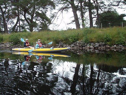 By nine o’clock the first round of kayakers set off on foot to the top of the staircase in “downtown” Ft. Augustus to lower themselves gently into our steady inflatable kayaks and paddle off up the Caledonian Canal. Another group did the same half-way through the morning, and the wind really didn’t blow and the sun really did shine! Walkers around town explored the back streets and heard the history, while everyone at some moment or another made time to visit the Canal Museum.